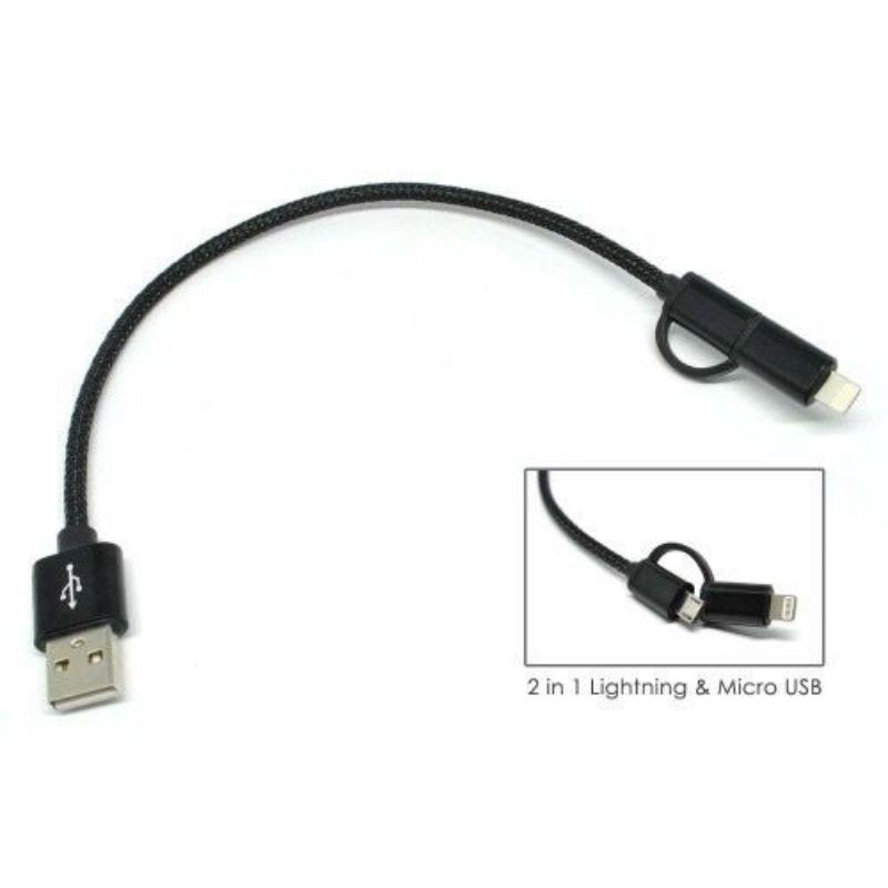 KABEL POWERBANK 2in1 / KABEL POWERBANK MICRO USB DAN LIGHTNING IPHONE - KABEL PENDEK 20cm - KABEL POWERBANK 2in1 - KABEL POWER BANK
