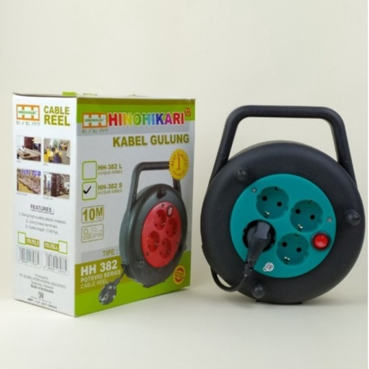 KABEL ROL / KABEL ROLL / KABEL GULUNG / CABLE REEL 4 LUBANG 10M 10 METER FULL + SAKLAR HINOHIKARI