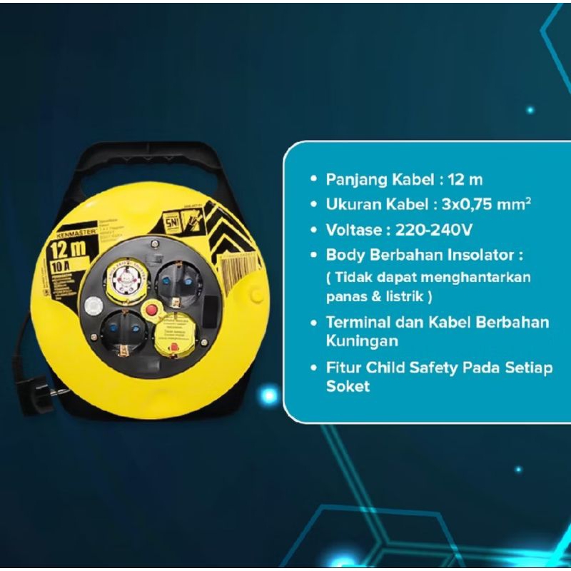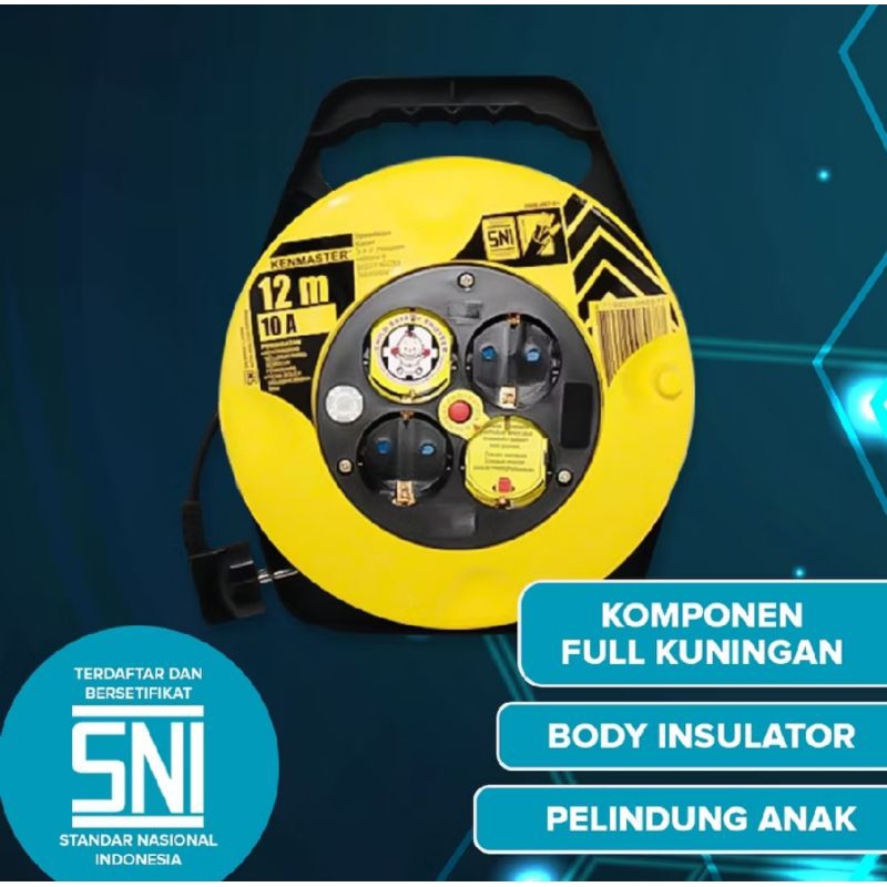 KABEL ROLL 12 dan 25 METER 3x1.00mm kabel roll SNI 4 lubang KENMASTER