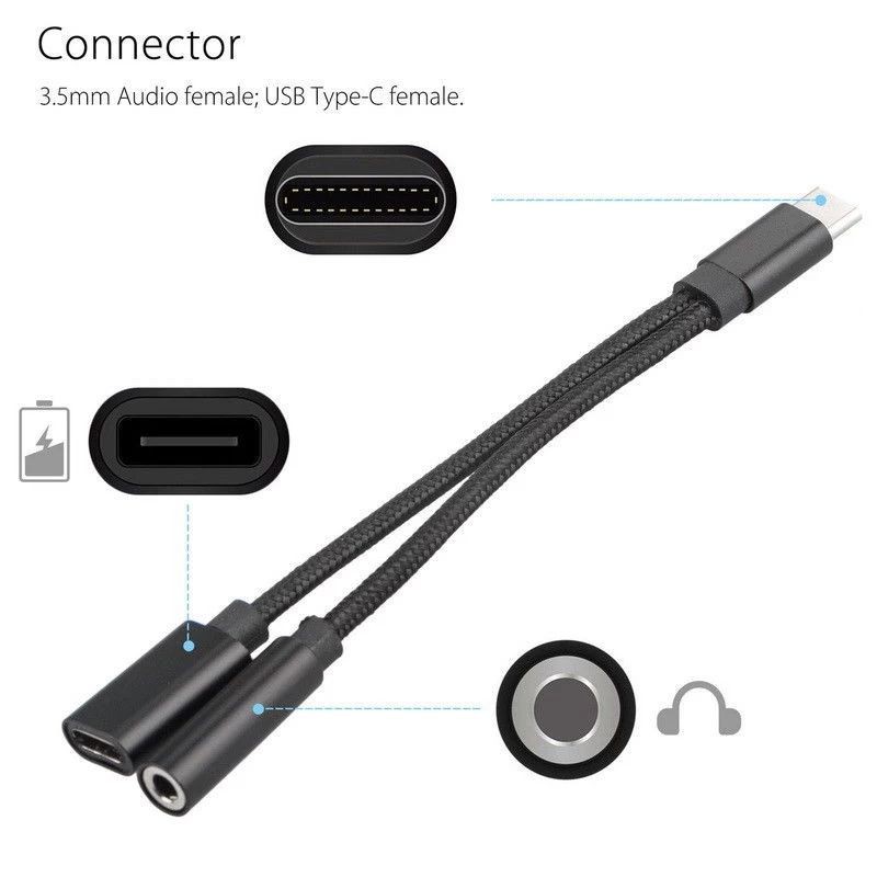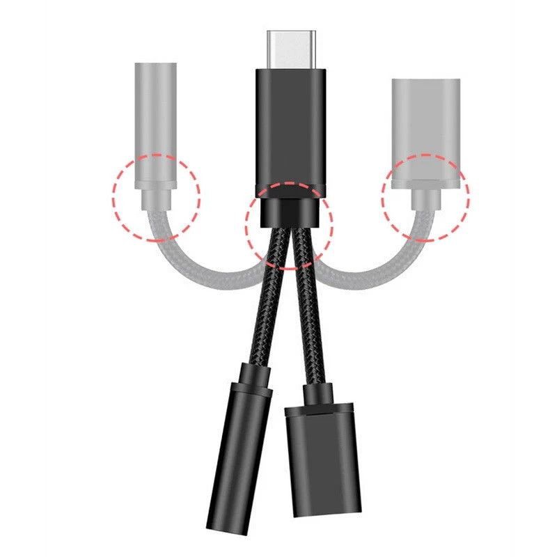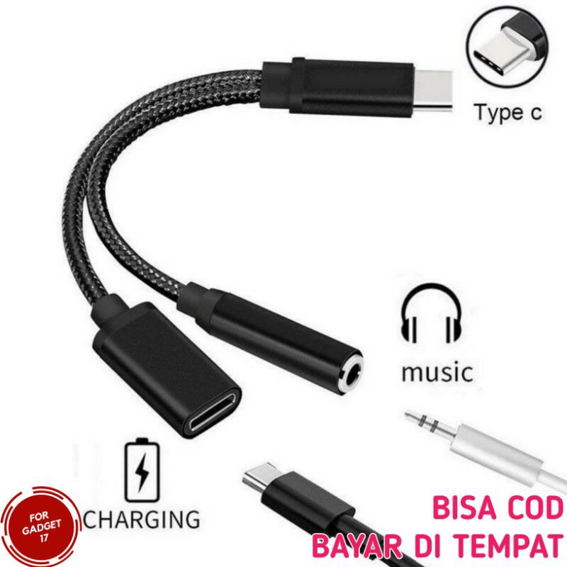 KABEL SPLITTER SPLITER CONVERTER CABLE HEADSET TYPE TIPE C TO AUDIO JACK 3 5MM WITH CHARGING