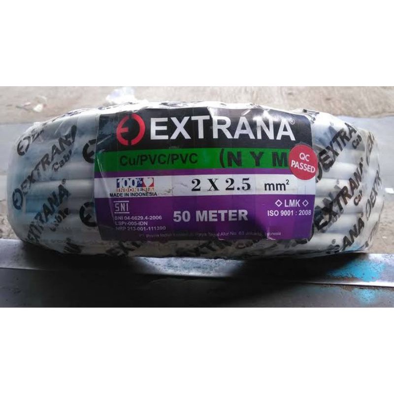 KABEL TEMBAGA TUNGGAL ISI 2 MEREK EXTRANA NYM 2X2,5 MM PANJANG 50 METER/KABEL POWER /KABEL UNTUK INSTALASI LISTRIK BERDAYA SEDANG /KABEL TEMBAGA ASLI /KABEL SNI LMK/KABEL UNTUK INSTALASI DI ATAS TANAH /KABEL UNTUK INSTALASI DI RUMAH
