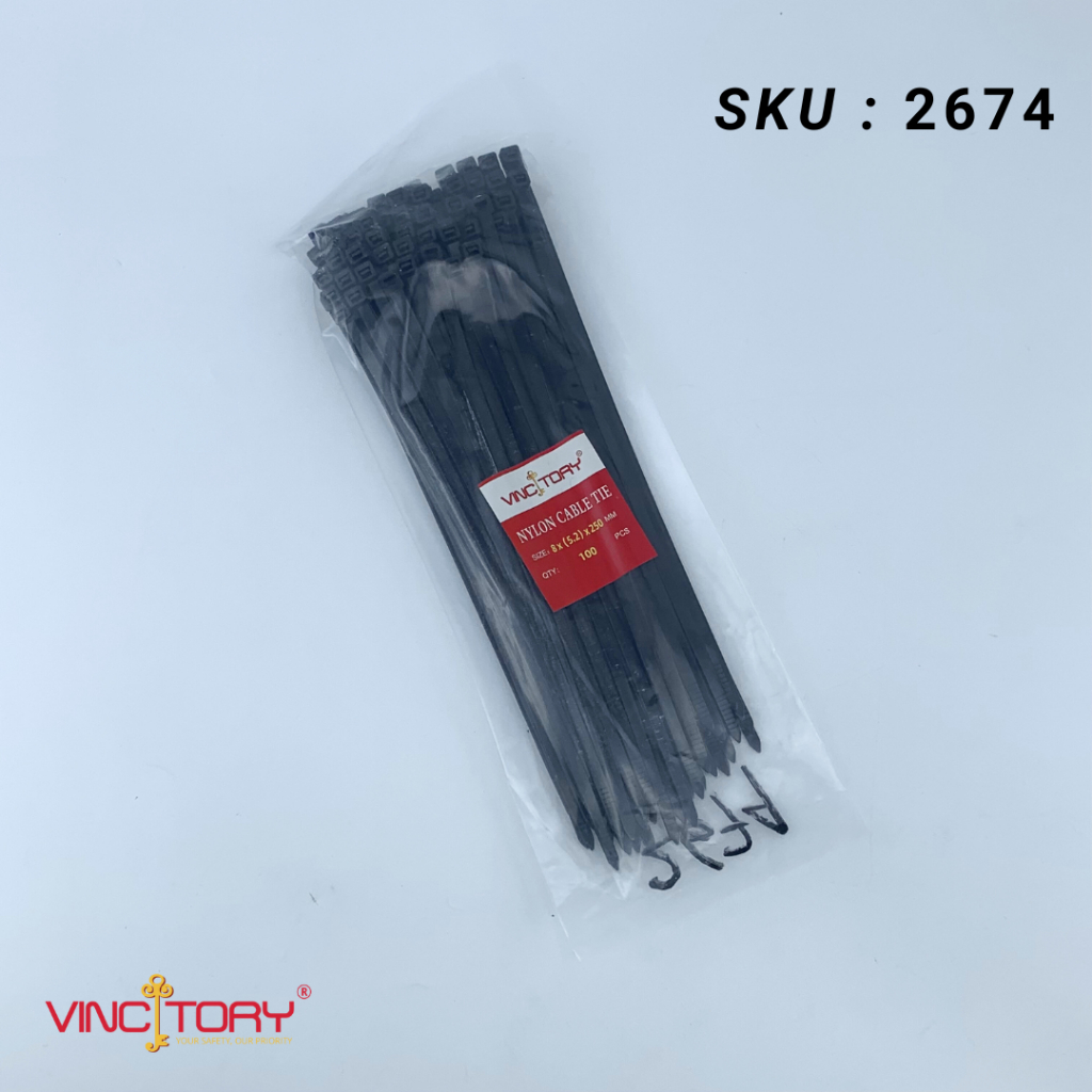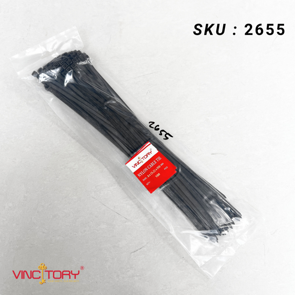 KABEL TIES Warna Besar Hitam Putih isi 100pcs Ukuran 20cm 25cm 30cm 40cm VINCITORY Nylon Kabel Ties