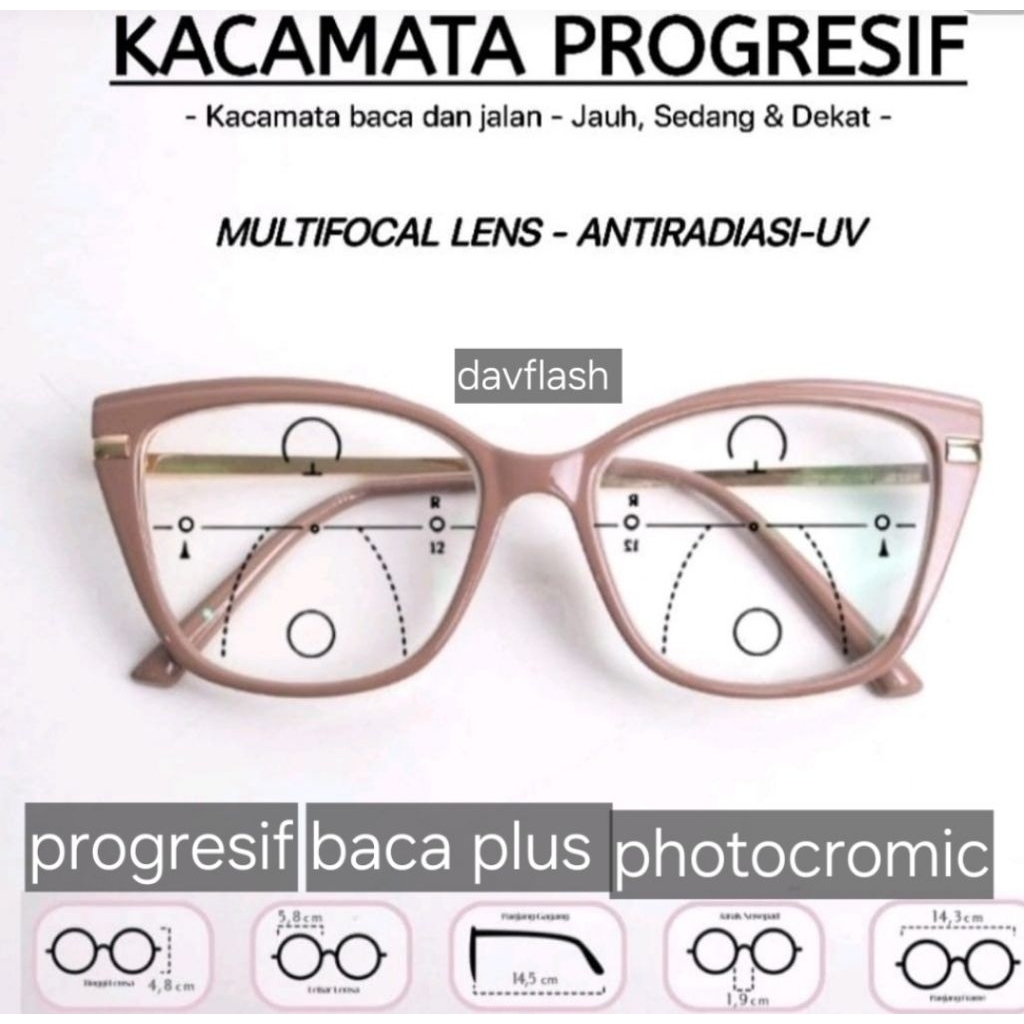 KACAMATA FRAME 9017 BACA DAN JALAN LENSA PROGRESIF PHOTOCROMIC KACAMATA WANITA CAT EYES ANTIRADIASI