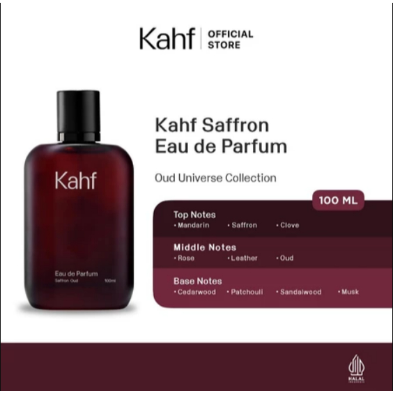 KAHF-Eau de Parfum Series 100 ml - Kahf Revered Oud Eau de Parfum/Kahf Saffron Oud Eau de Parfum 100 ml - Eau de Parfum dengan aroma yang cukup manis, namun juga memberikan kehangatan serta kepercayaan diri kepada pemakainya.