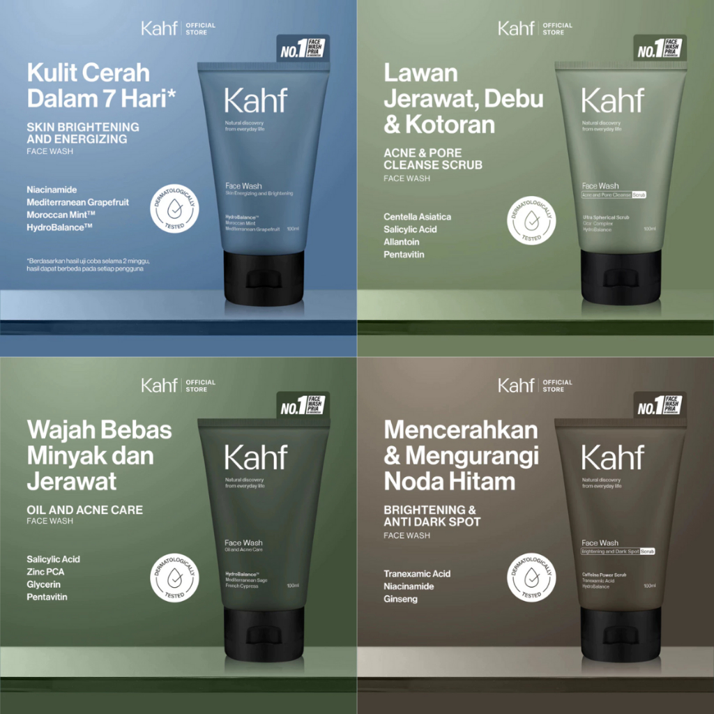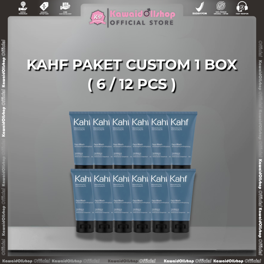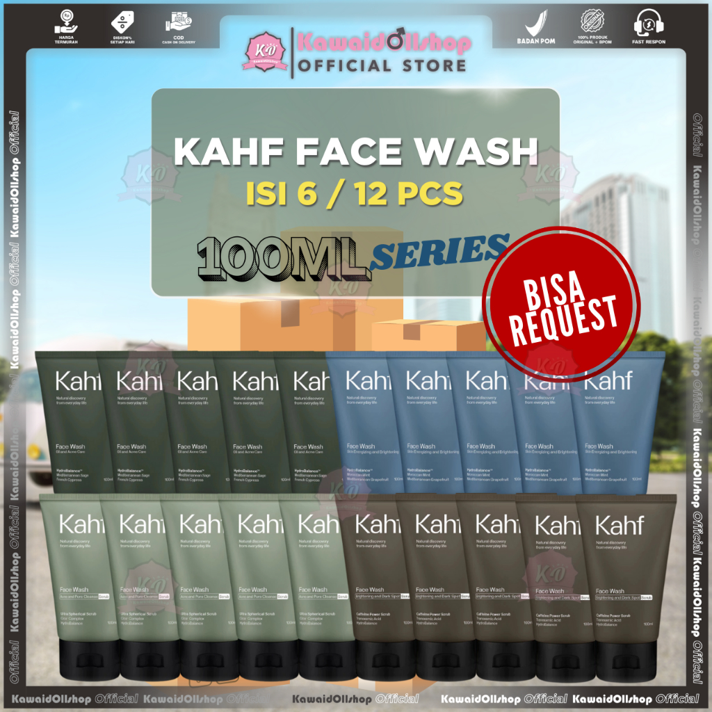 KAHF FACE WASH REQUEST [ BOX ] ISI [ 6/12 ] PCS 100ml - Paket pembersih Wajah Pria Anti Jerawat, Berminyak Dan Noda Hitam