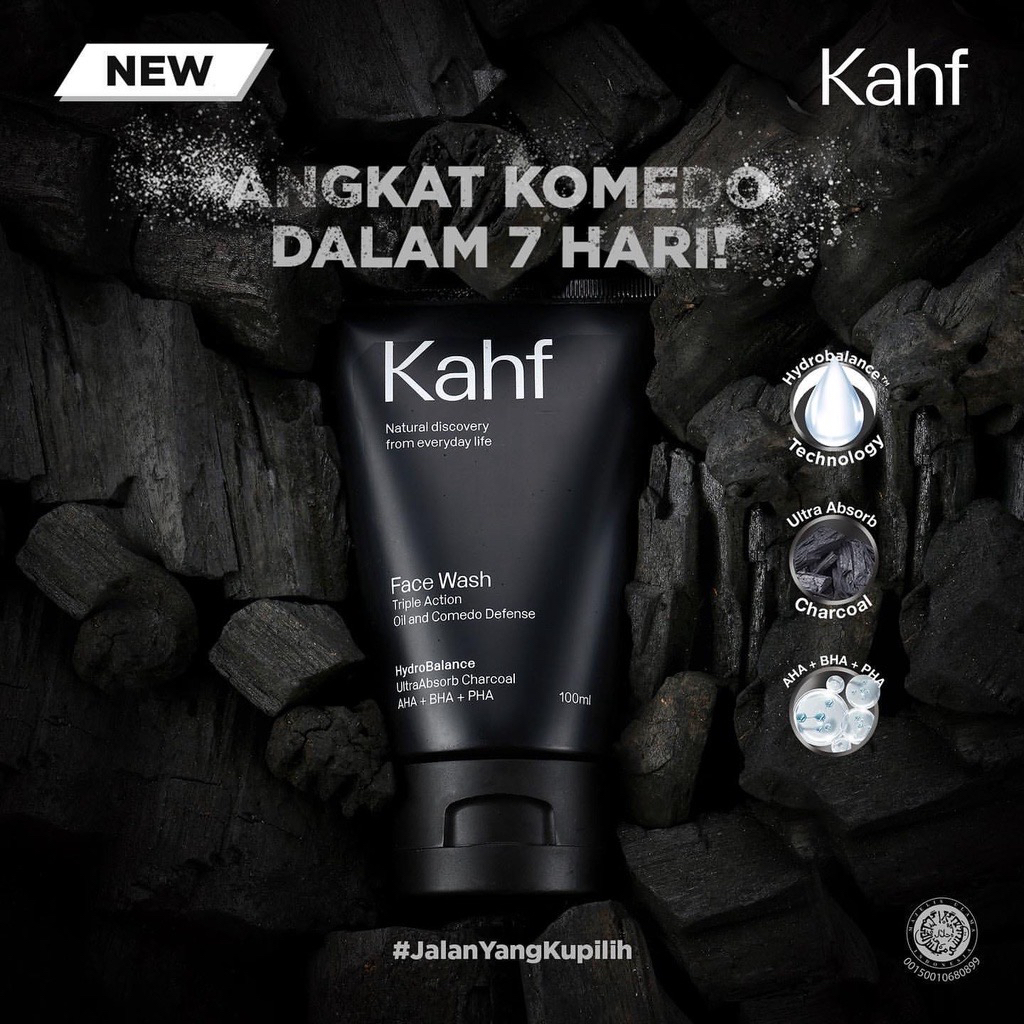 KAHF Face Wash 50ml Indonesia / Sabun Wajah Pria / Skin Energizing Cooling And Brightening Triple Action Oil Comedo Defense Acne Gentle Exfoliating Scrub / Pembersih Pencuci Cuci Muka Jerawat Moisturizer/ Skincare Facial / Man Cowo Cowok Paket Set / 100ml