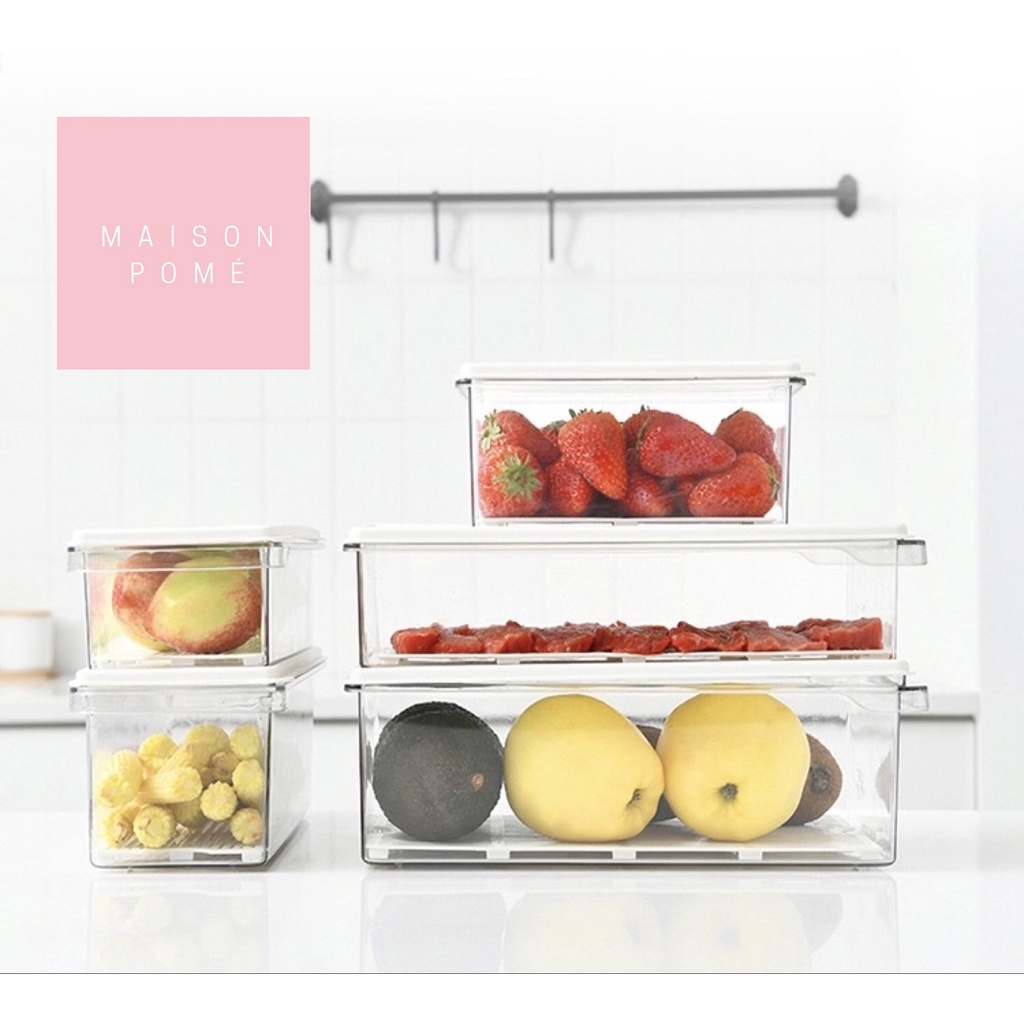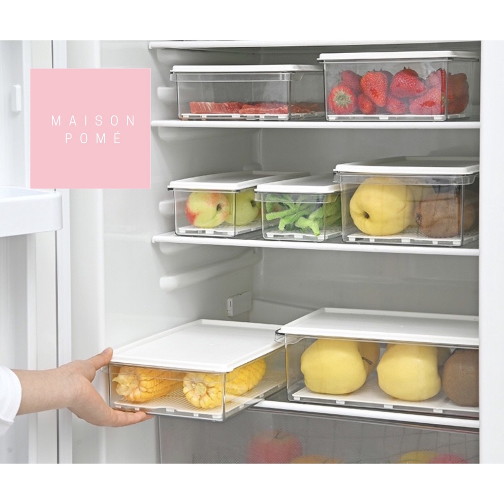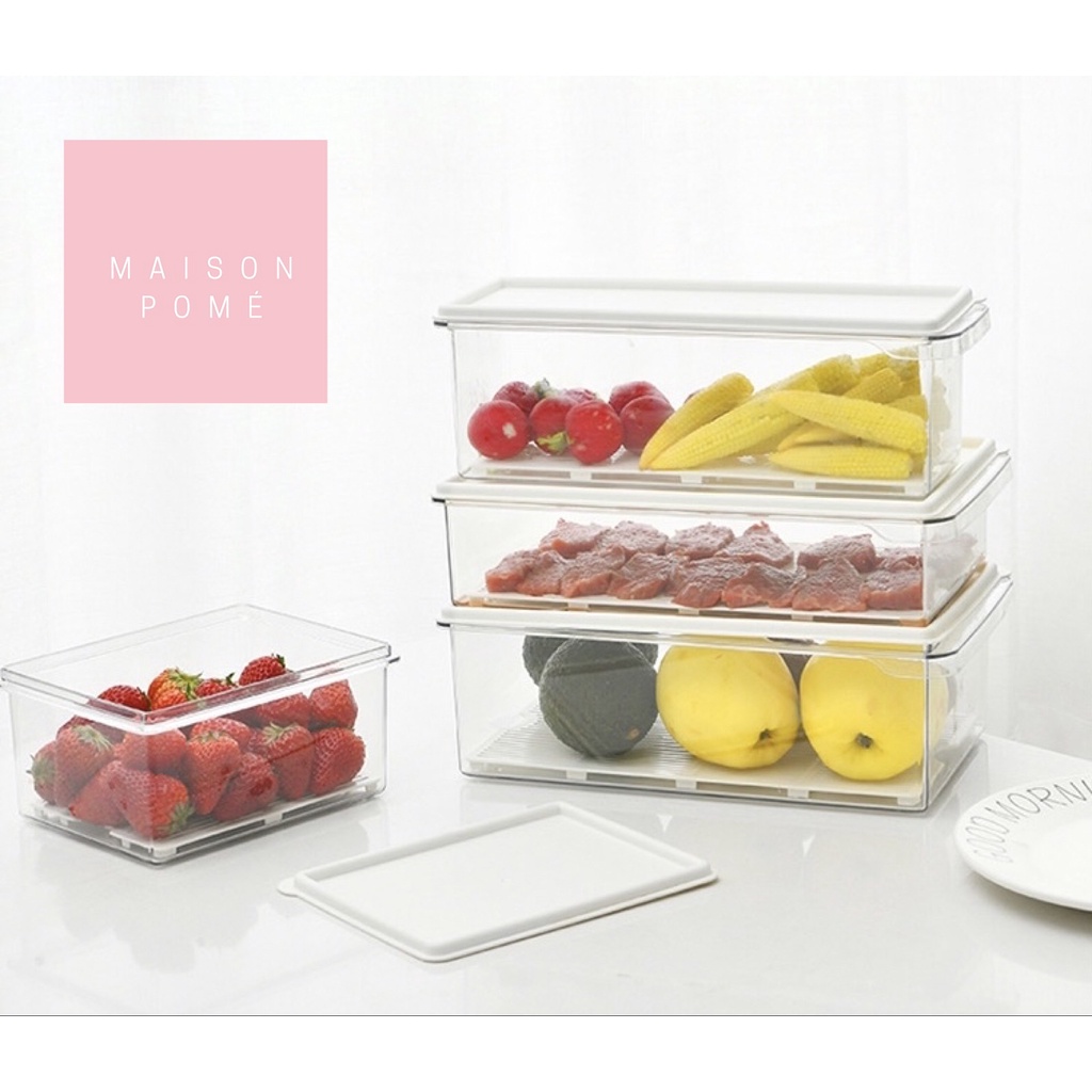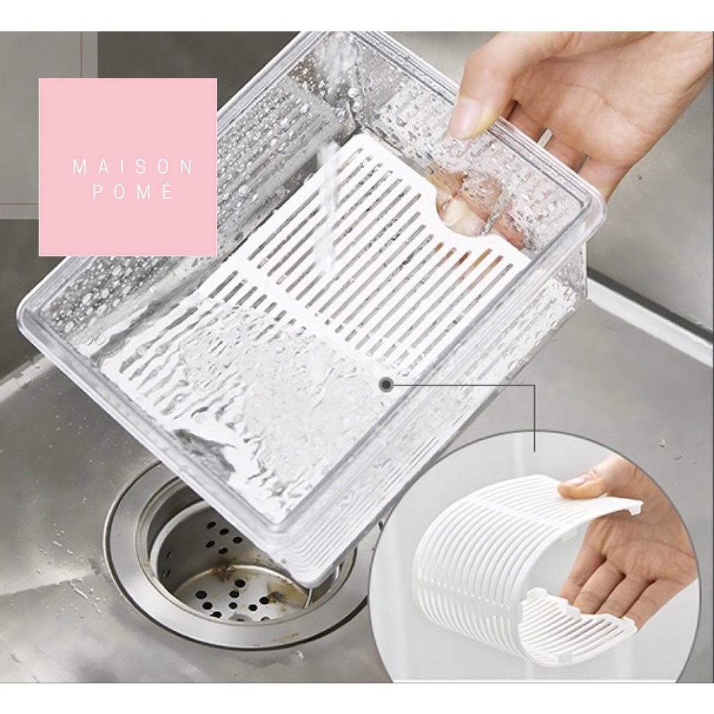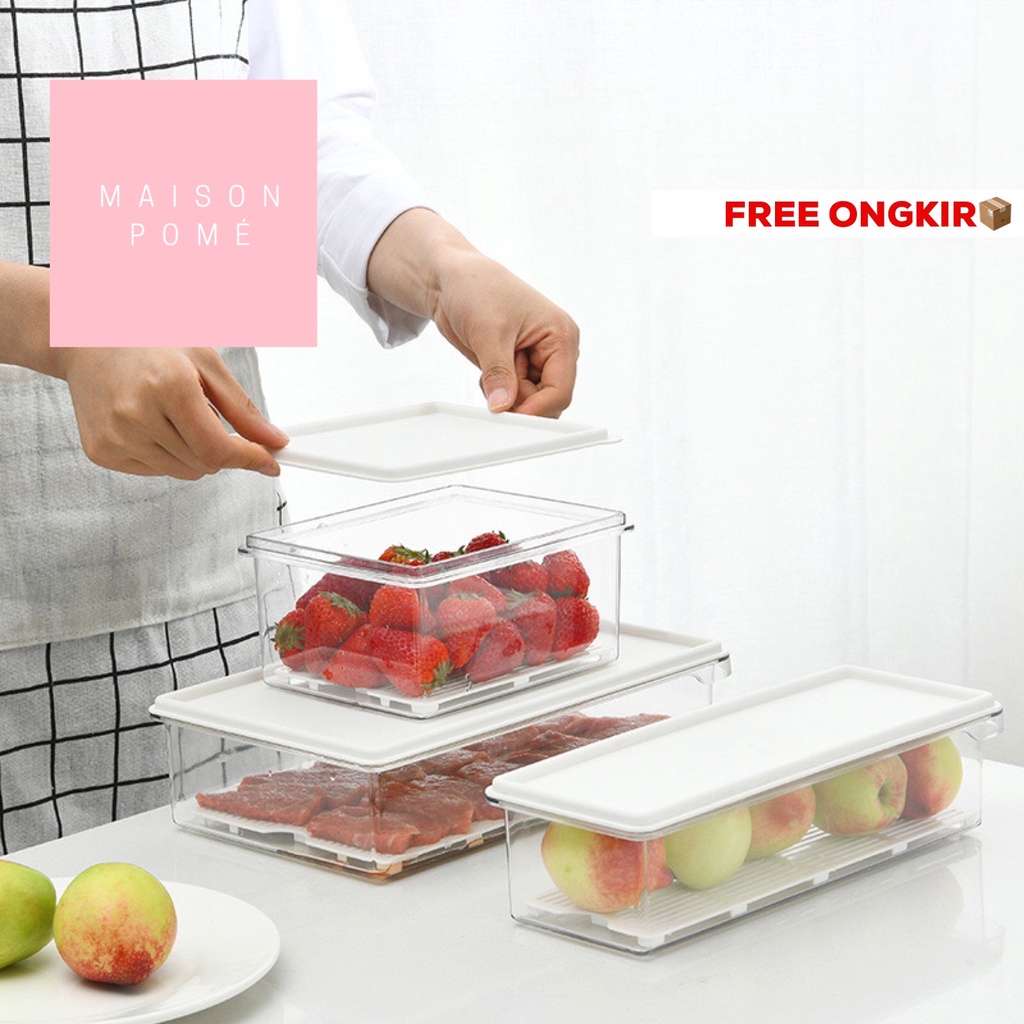 KAI Kotak Penyimpanan Makanan Organizer Food Storage Kulkas Freezer Sayur Buah Daging Dengan Saringan Strainer Drainer