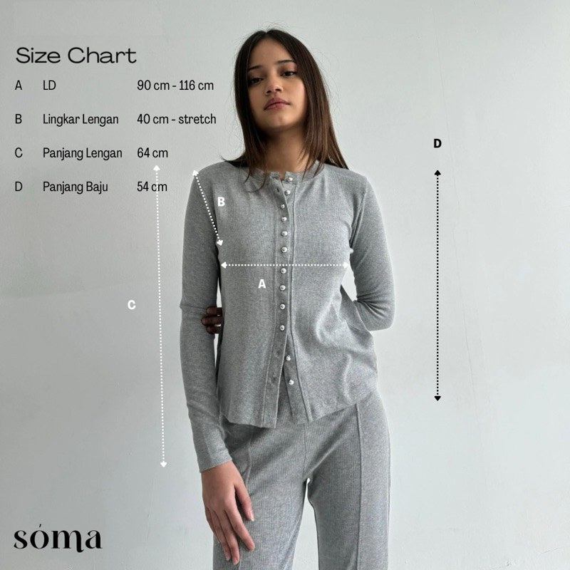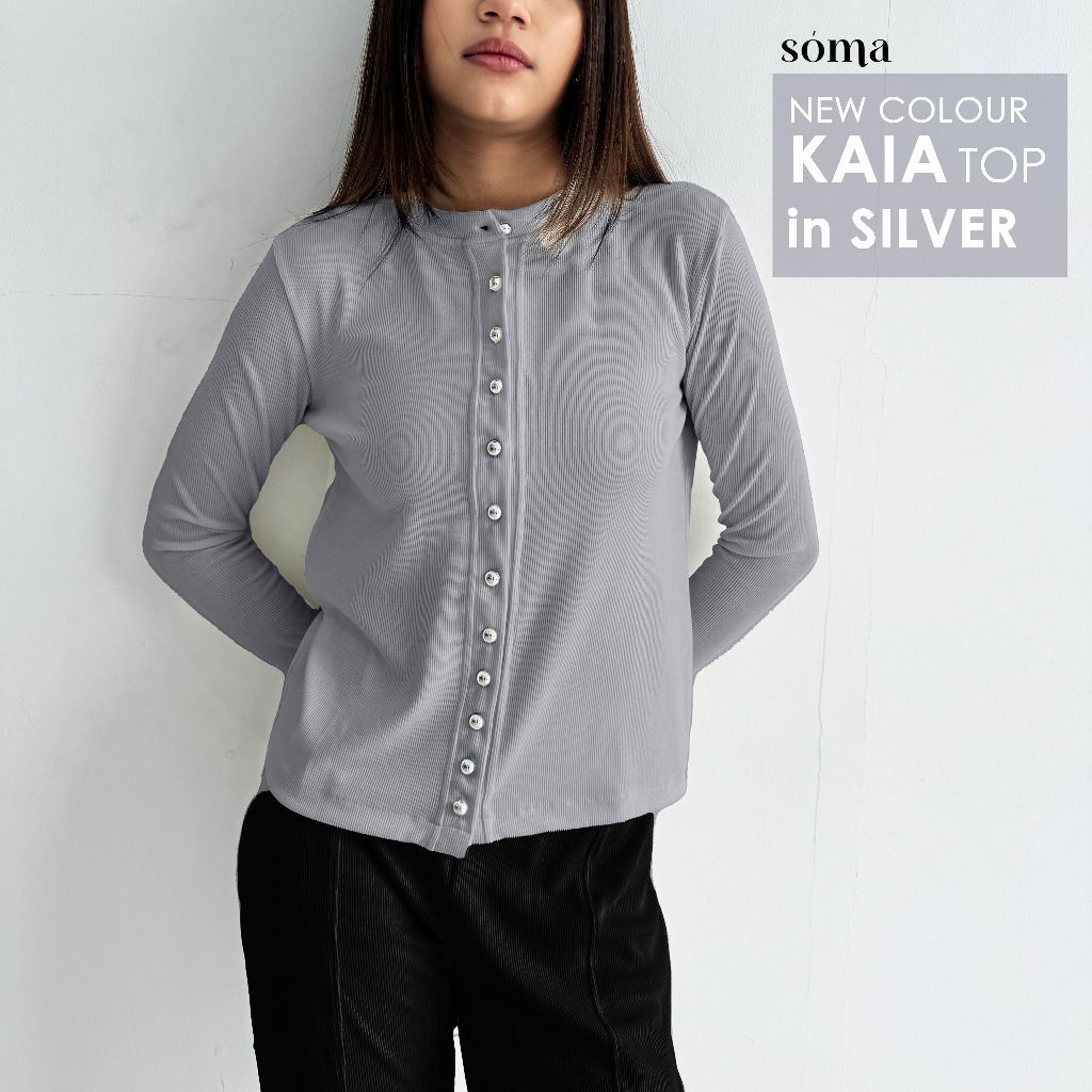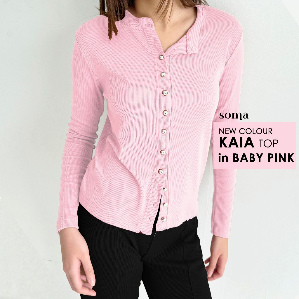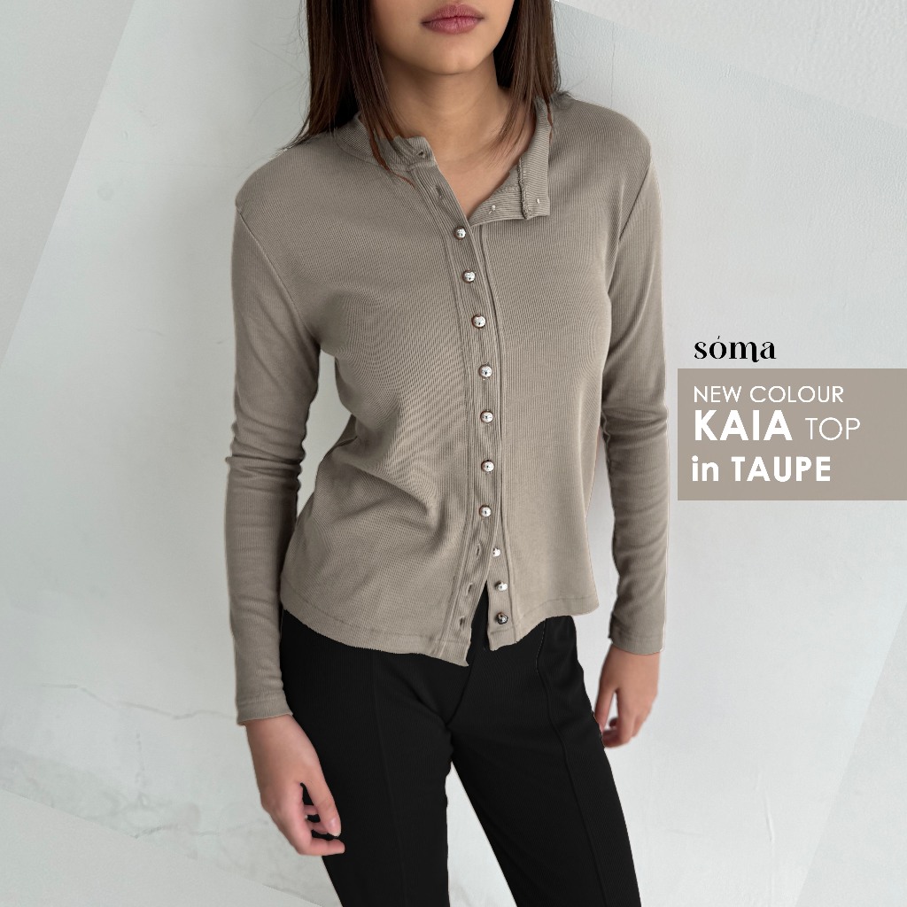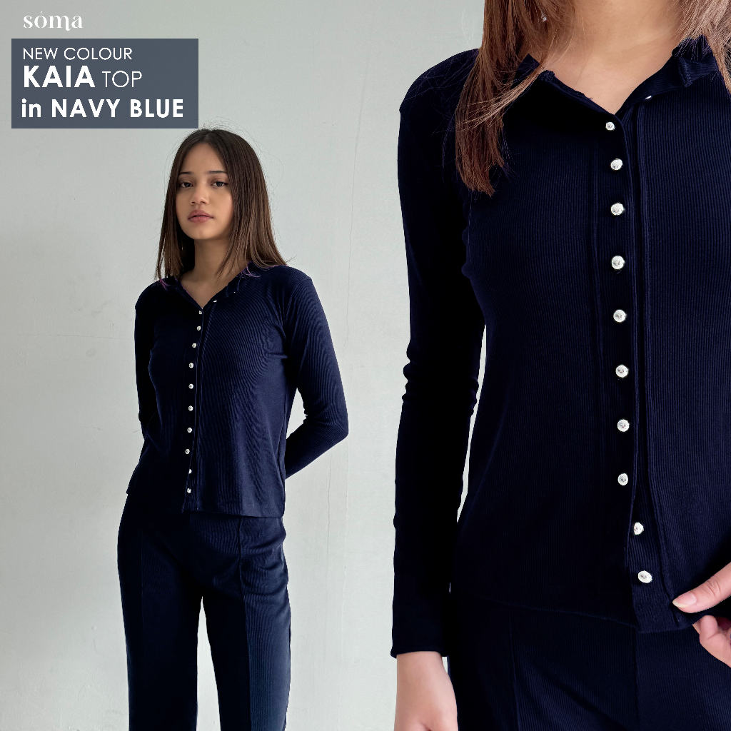 KAIA TOP | Atasan Knit Wanita Lengan Panjang Basic Korean Top Summer Baju Knit Kancing Rib Wanita Long Sleeve SOMA
