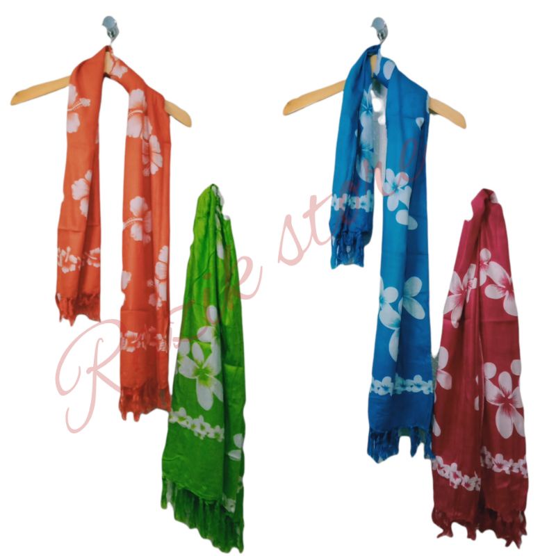 KAIN BALI BUNGA PUTIH/KAIN BALI MURAH/KAIN PANTAI CORAK BUNGA/KAIN PANTAI RUMBAY