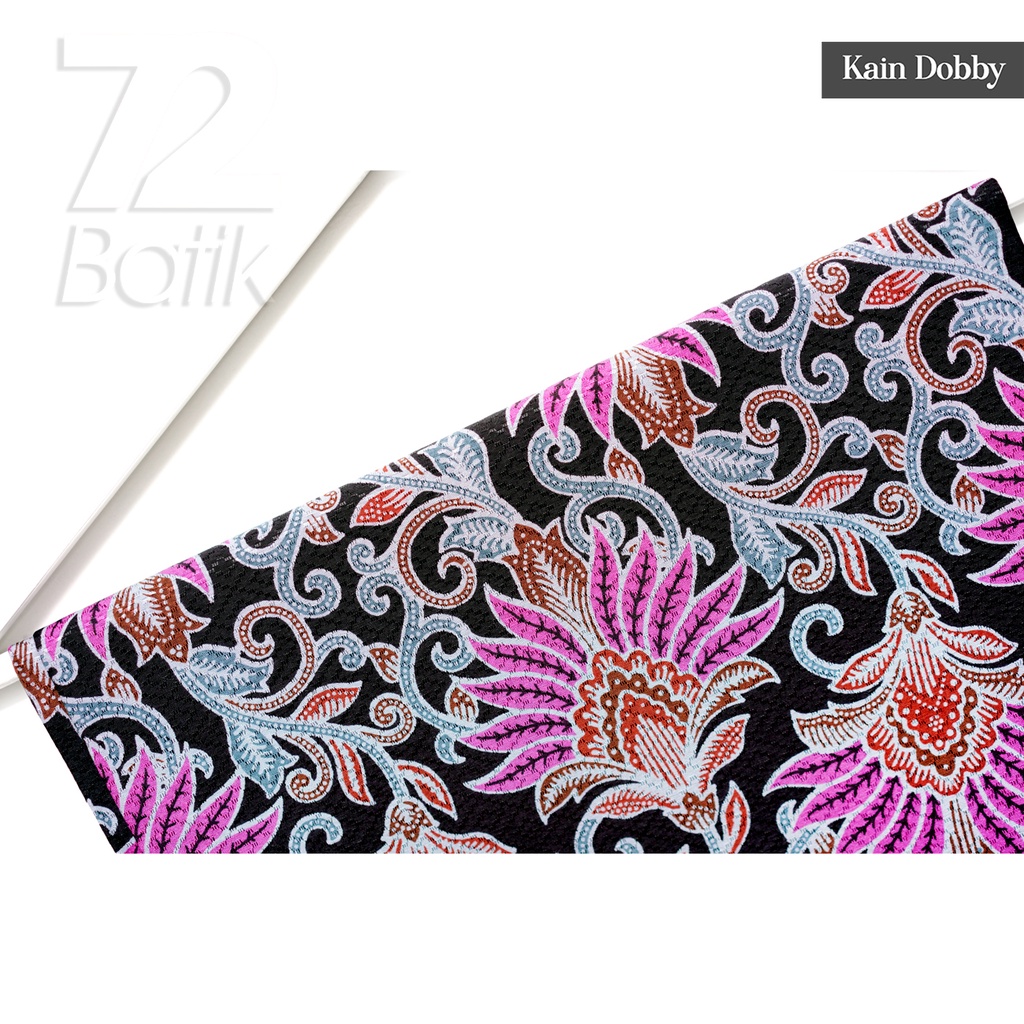 KAIN BATIK PREMIUM Bahan Dobby Motif Kembang Citra Warna Ungu Pink Hitam 722952 Cap 72 Jarik Jarit Samping Kebat Panjang Batik Dobby Modern Premium Bahan Seragam Batik Pernikahan Kantor Keluarga Murah Kamen Jadi Batik Bali Lembaran