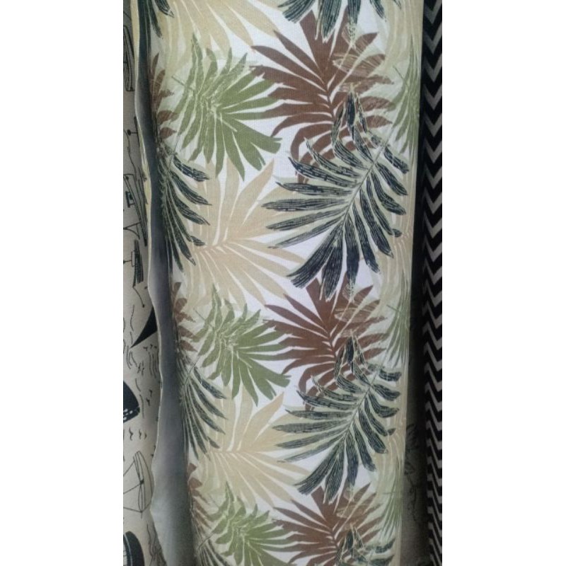 KAIN KANVAS BAHAN TAS METERAN MOTIF TROPICAL LEAVES DAUN COKELAT