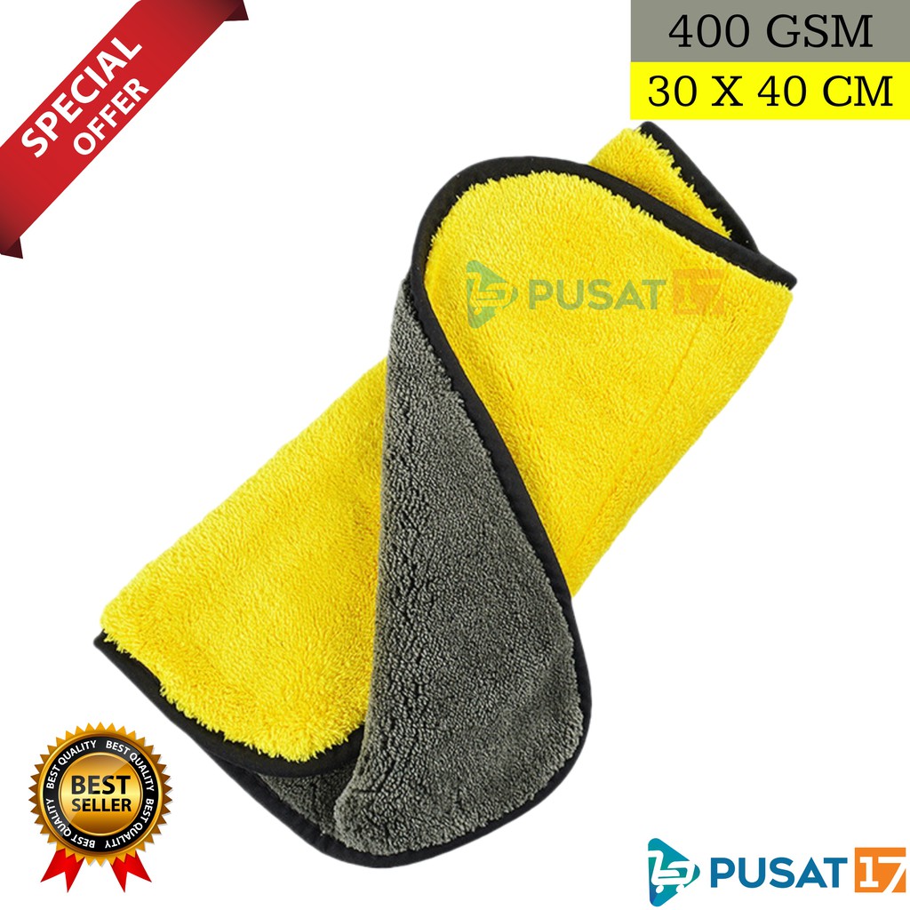 KAIN LAP MICROFIBER 400GSM 30X40CM KAIN LAP KUNING MOBIL MOTOR SERBAGUNA 2 SISI / OTOMOTIF TOWEL