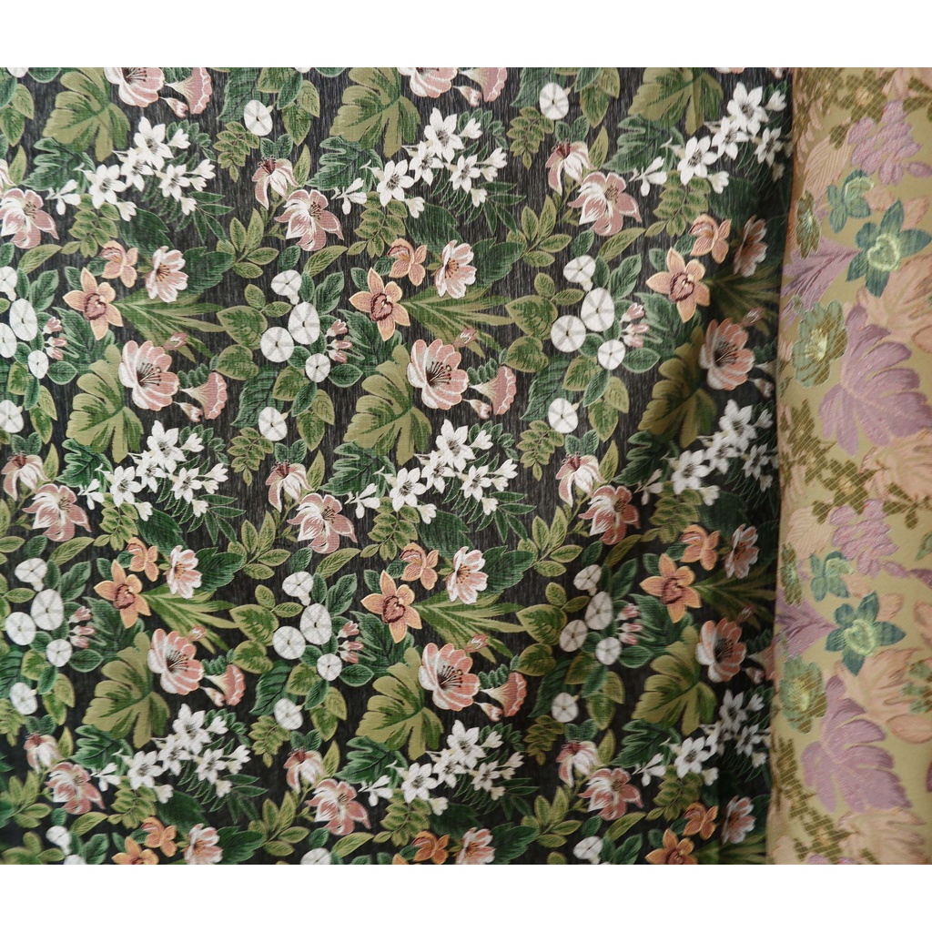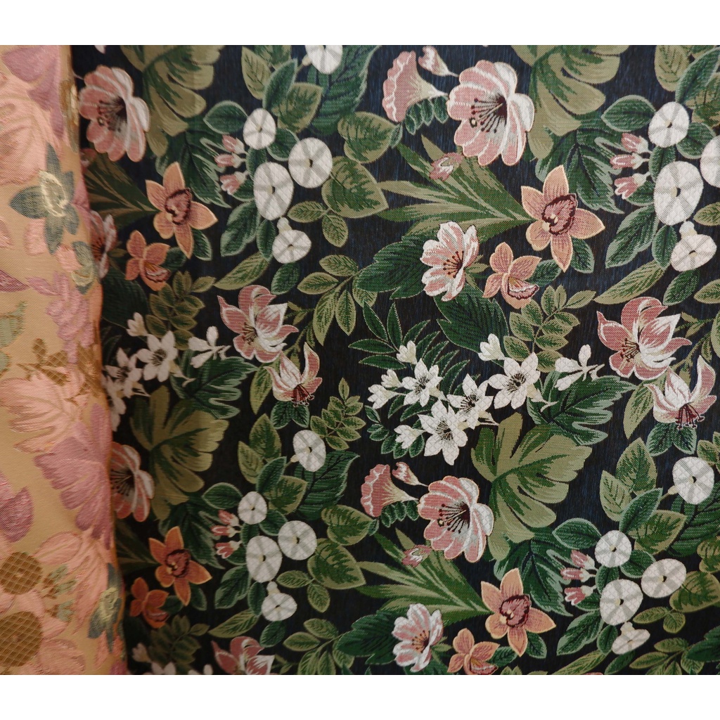 KAIN MOTIF TROPICAL HITAM ABU SOFA, BEANBAG, STOOL, SARUNG BANTAL, JOK