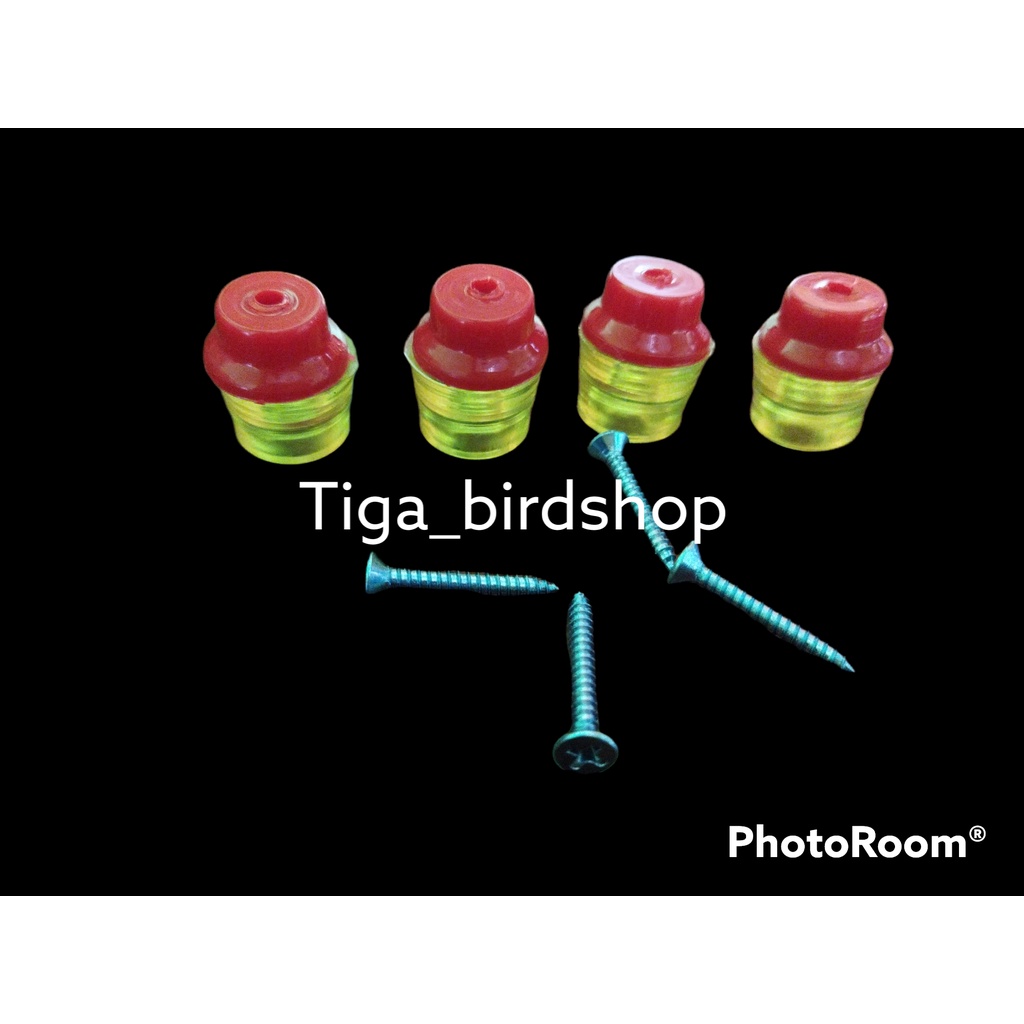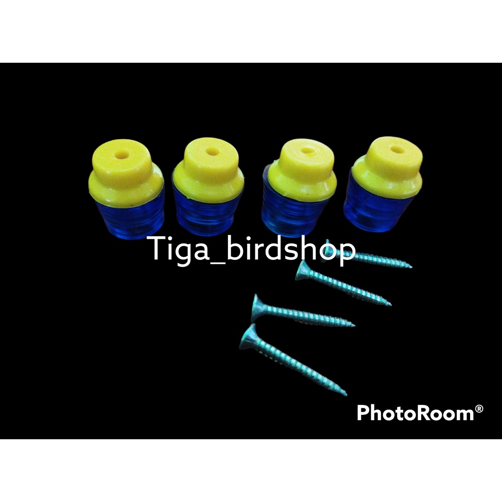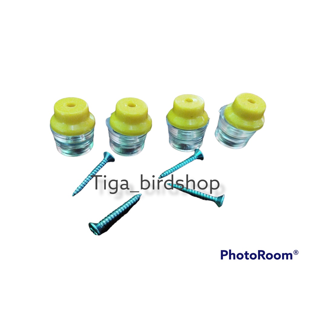 KAKI KARET ISI 4 + TOPI PLASTIK TEBOK SANGKAR BURUNG TRANSPARAN AKSESORIS KANDANG KOTAK KOSAN KACER