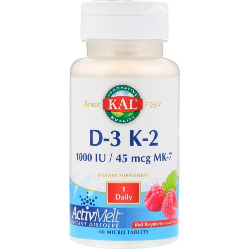 KAL D3 K2 1000 IU / 45 mcg MK-7 60 MicroTab Ori USA Vit KAL Vit D3 K2