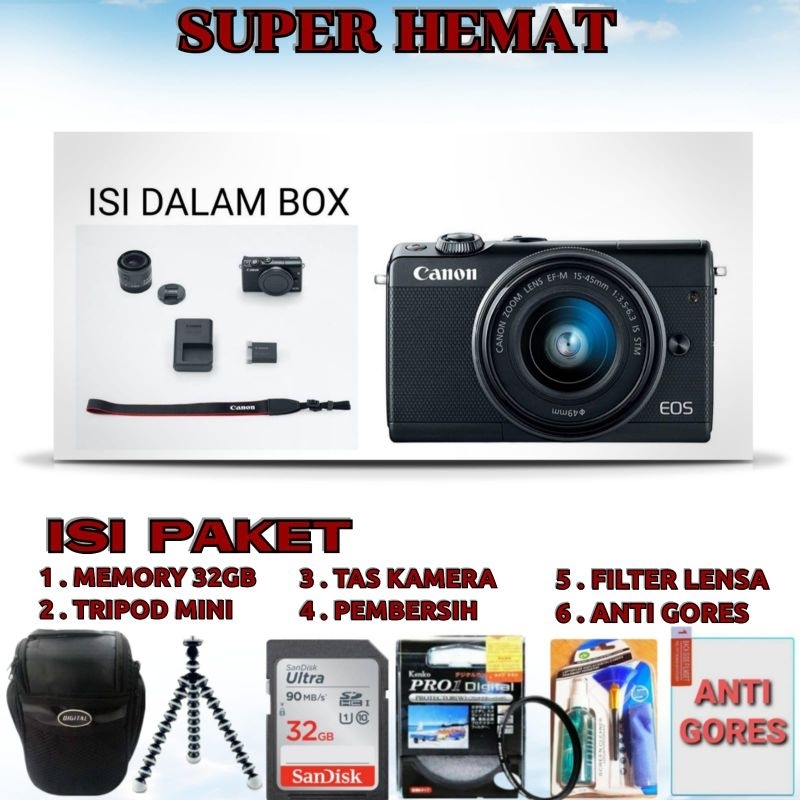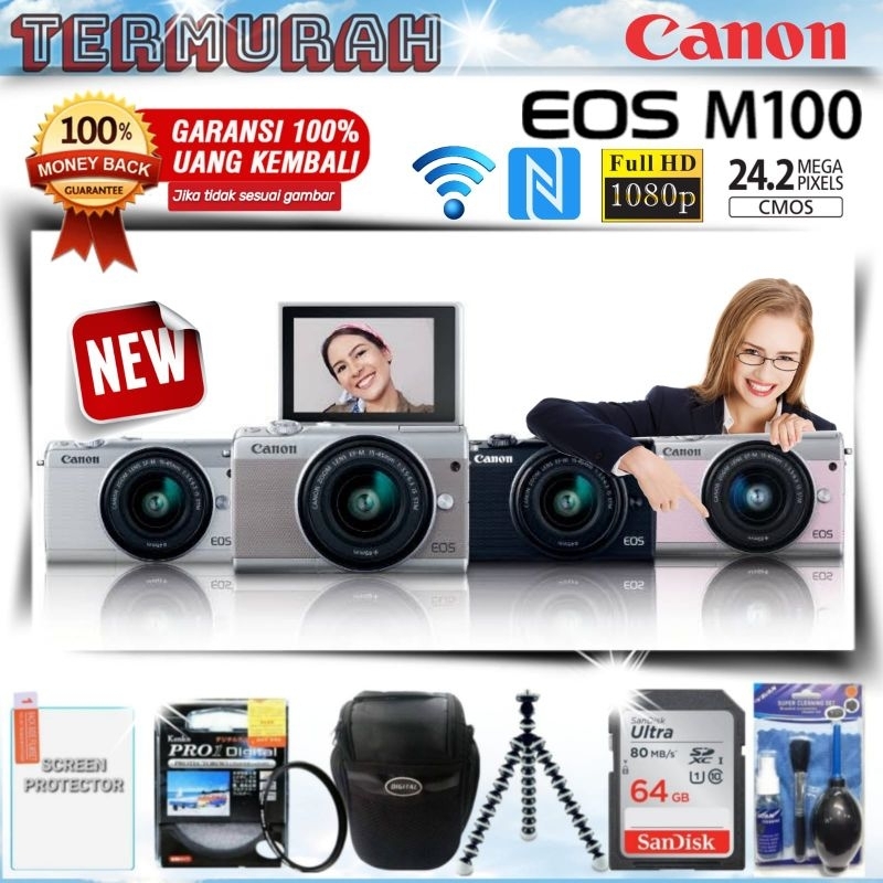 KAMERA CANON EOS M100 wifi + LENSA KIT 15-45MM IS STM PRODUK ORIGINAL BERGARANSI