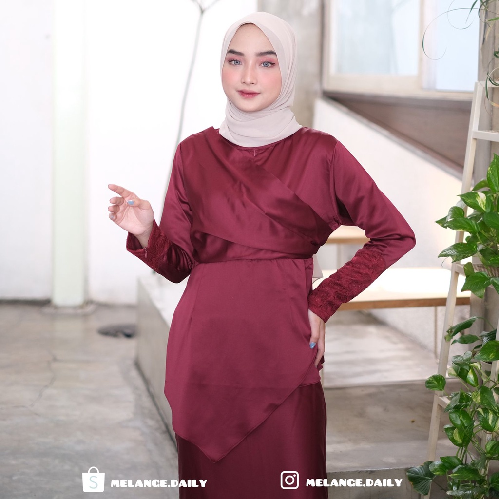 KAMILA ONE SET Satin Brukat Elegan – Baju Kurung Kondangan Modern Muslimah Busui Friendly All Size