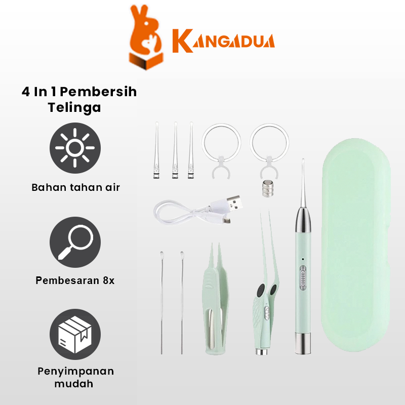KANGADUA 4in1 Pembersih Telinga Bayi LED Rechargeable Korek Upil Kuping Bayi Silikon Ear pick Earpick Nose Tweezer