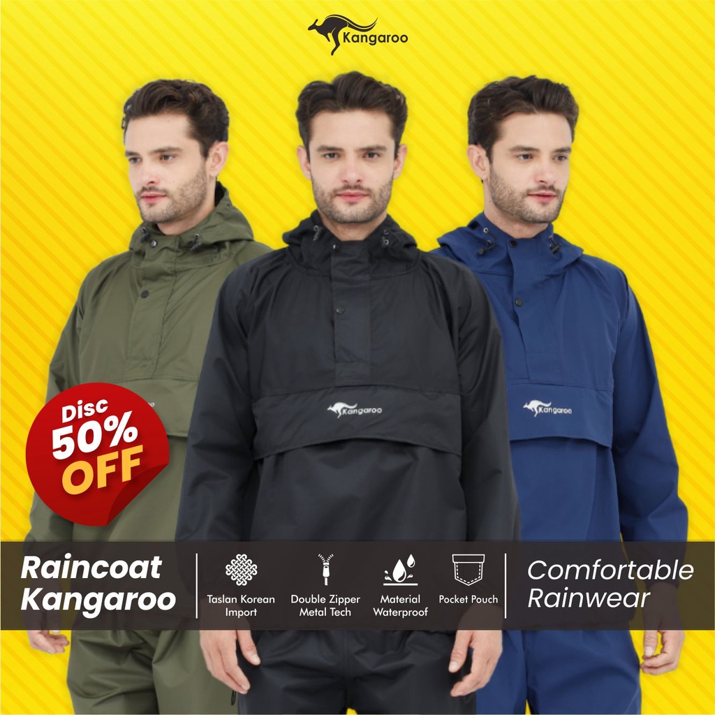 KANGAROO RAINCOAT Jas Hujan Kangguru Anti Bocor Jas Hujan Tebal Saku Kangguru Pria Wanita Dewasa Anti Air Bahan Taslan Import Original Setelan Jaket Jas kanguru Mantel Kangaro
