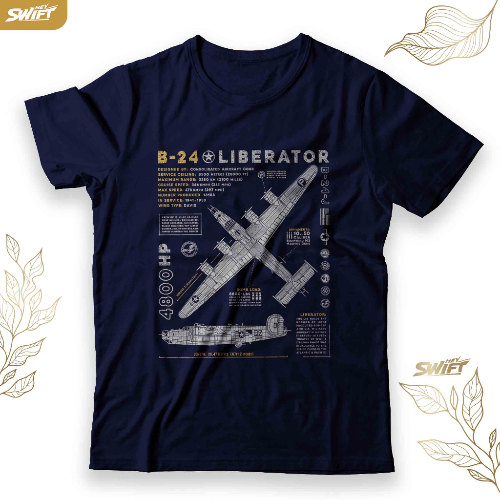 KAOS B-24 Liberator aircraft military fighter jet TSHIRT BAJU DISTRO