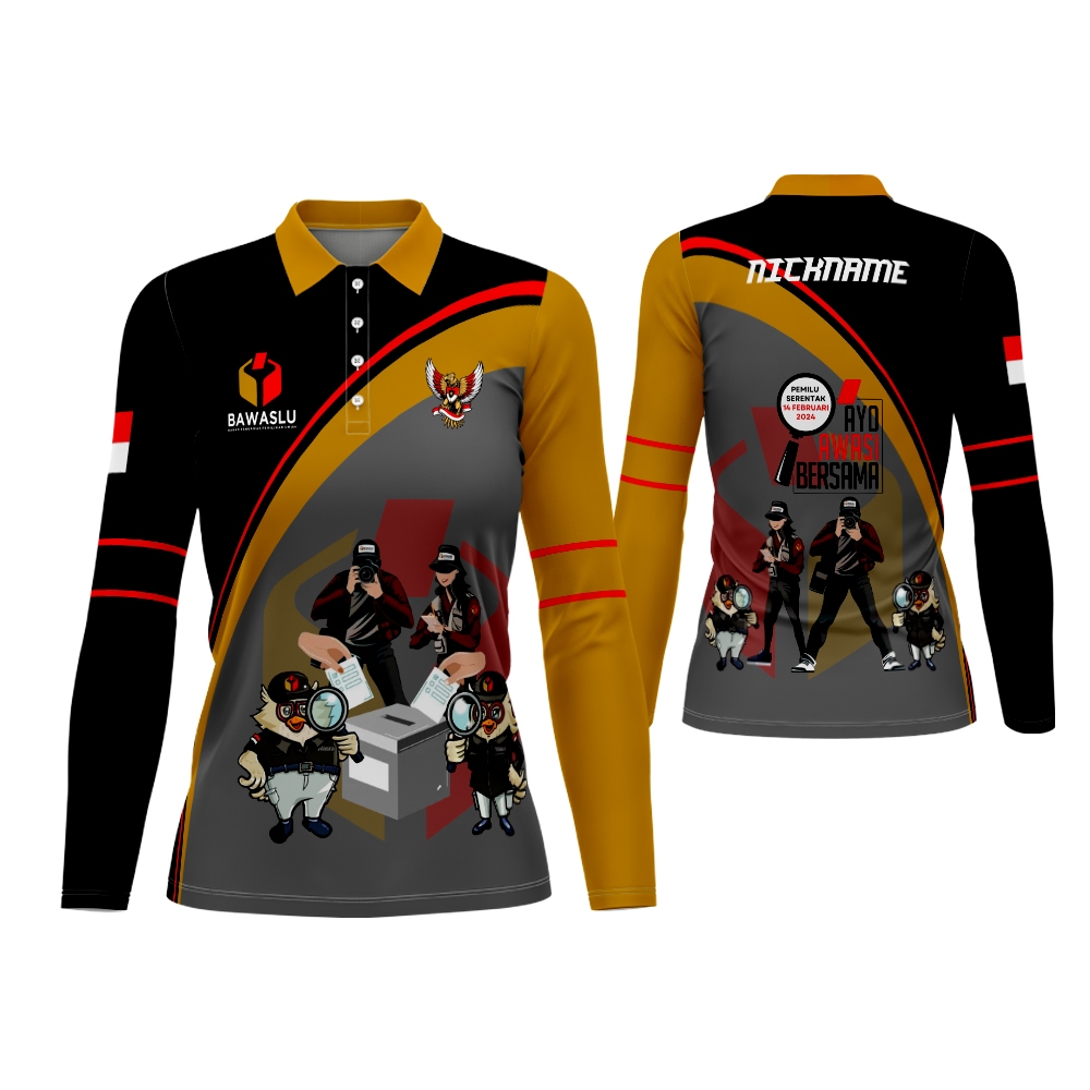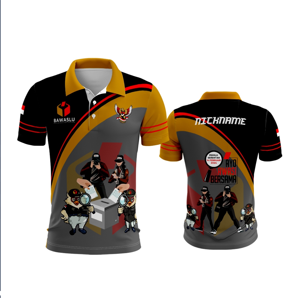 KAOS BAJU BAWASLU PENGAWAS TPS PEMILU 2024 MASKOT TERBARU KAOS KPPS GRATIS CUSTOM NAMA LOGO