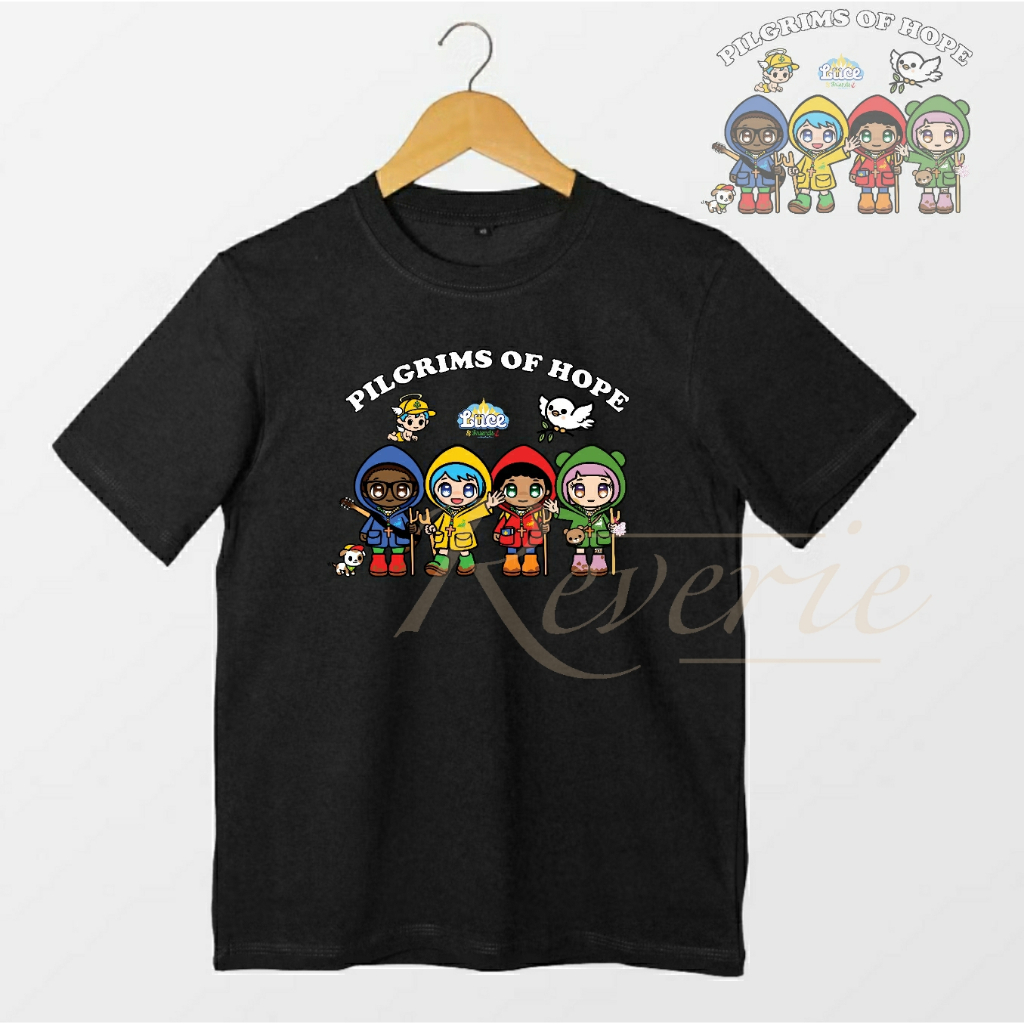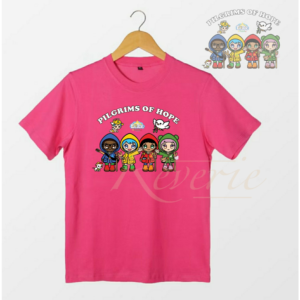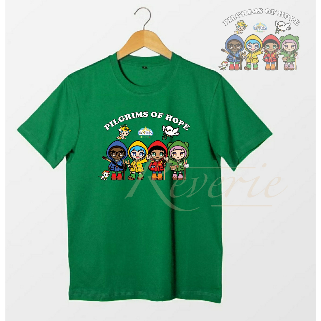 KAOS BAJU LUCE AND FRIENDS FULL TEAM PILGRIMS OF HOPE TSHIRT SERAGAM ACARA YUBILEUM 2025 YUBELIUM MASKOT VATIKAN PAROKI GEREJA KATEDRAL ZIARAH KATOLIK KRISTIANI DEWASA ANAK COUPLE OUTFIT