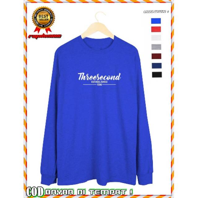 KAOS DISTRO THREE SECOND 1996 COMBED 30S / KAOS LENGAN PANJANG COTTON COMED / KAOS ONECK POLOS