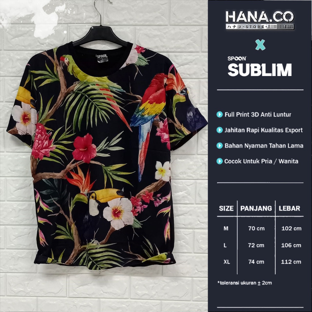 KAOS FULL PRINT SUBLIM DISTRO PRIA/WANITA MOTIF FLOWER PARROTS