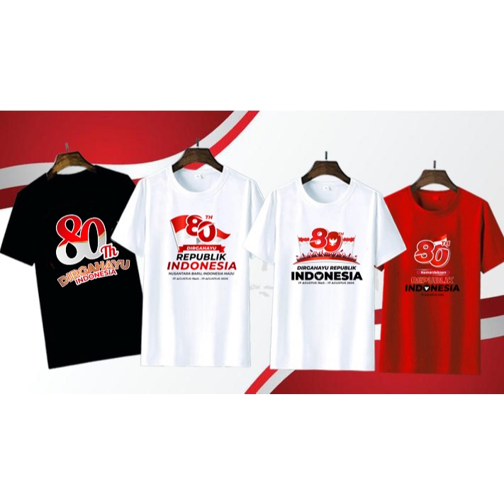 KAOS KEMERDEKAAN HUT RI KE 80 Tshirt Tema 17an Merah Putih Dirgahayu Indonesia Merdeka Baju Unisex Harga Satuan