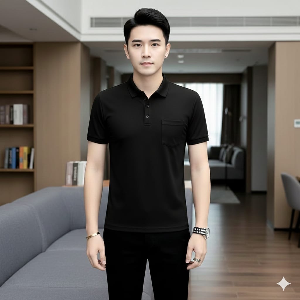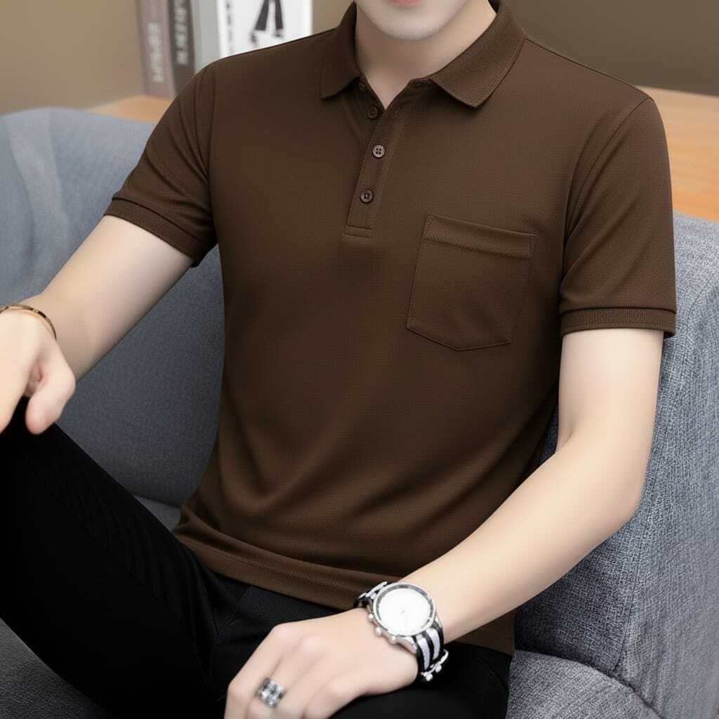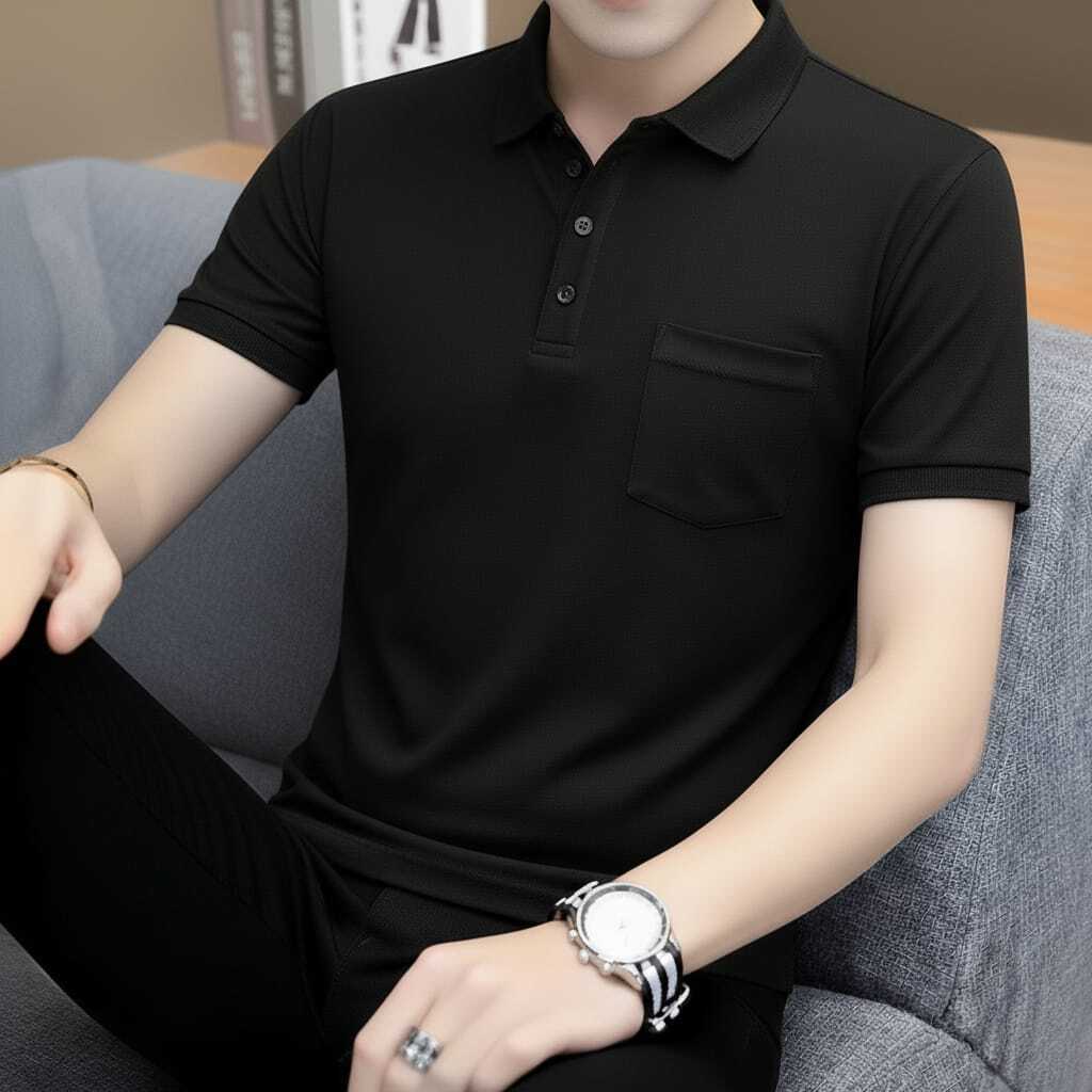 KAOS KERAH SAKU PRIA POLOS DISTRO MANGSET LENGAN PENDEK