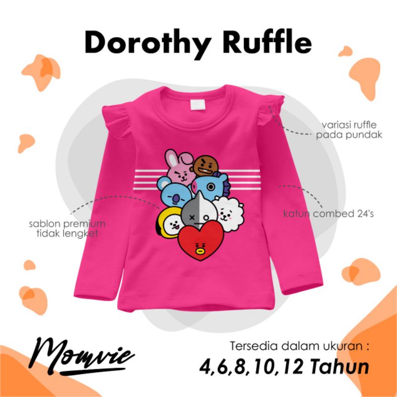 PG01 MOMVIE ruffle kaos lengan panjang anak size 4-12 y