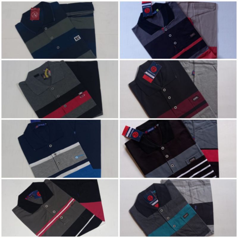 KAOS PENDEK KERAH POLO MOTIF SALUR/KAOS BAPAK ORANG TUA/KAOS UNTUK HADIAH SOUVENIR/KAOS WANGKI PRIA
