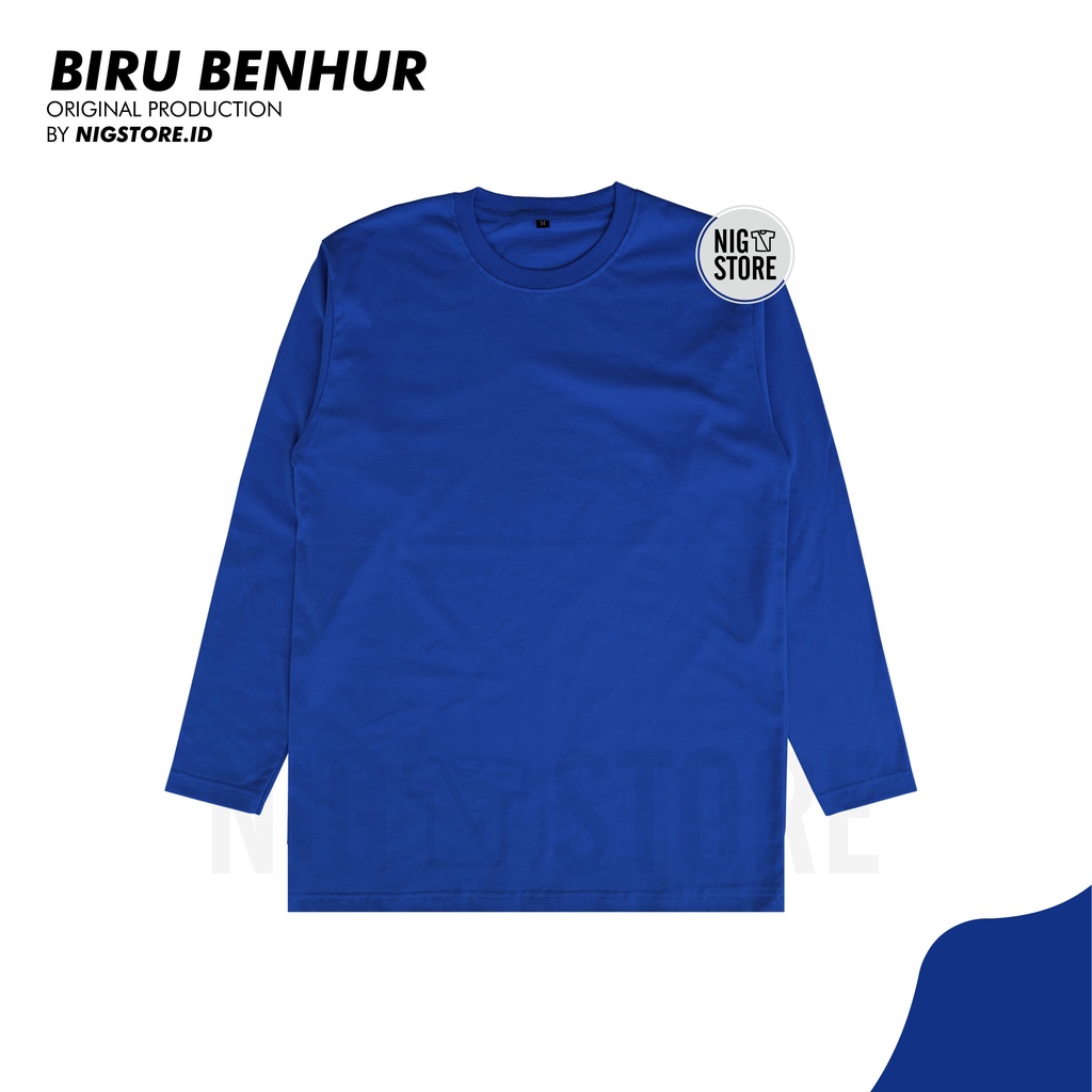 KAOS POLOS BIRU BENHUR BASIC LENGAN PENDEK & PANJANG COTTON COMBED 30S