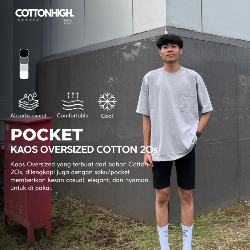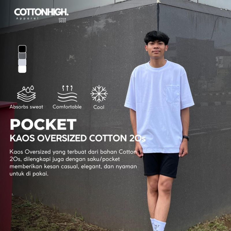 KAOS POLOS OVERSIZE POCKET UNISEX PREMIUM COTTON COMBED 20S
