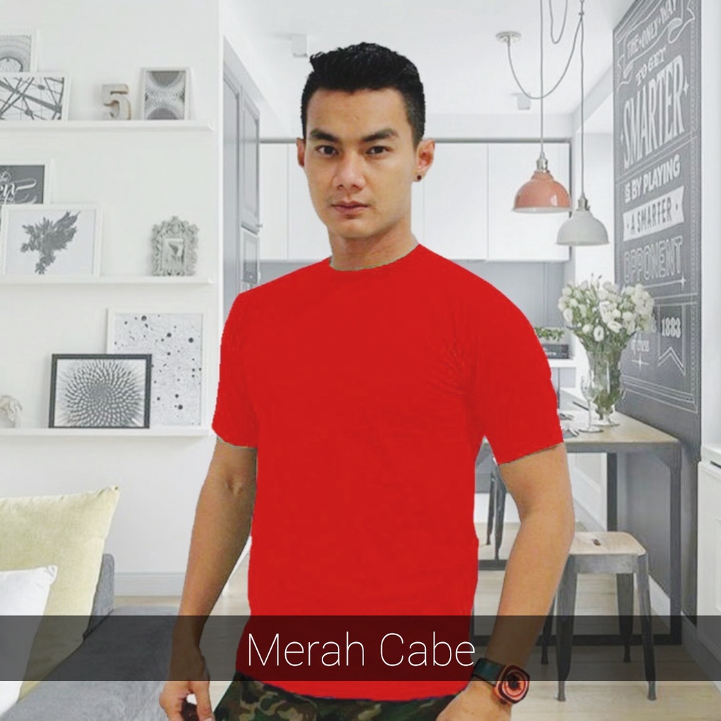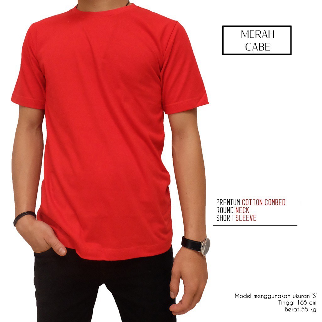 KAOS POLOS PRIA merah cabe bahan combed 20s