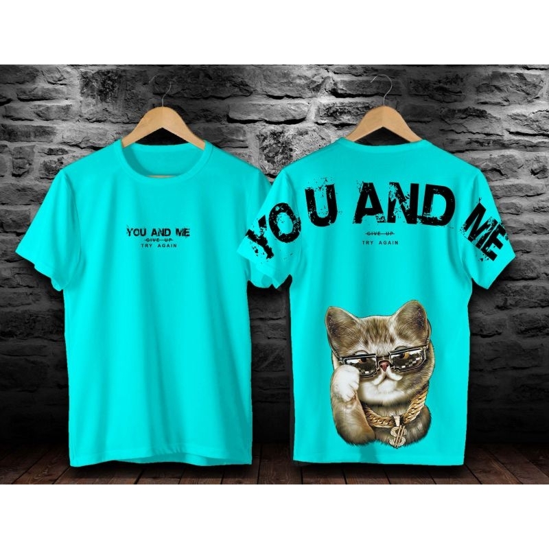 KAOS PRIA DISTRO MOTIF KUCING YOU AND ME KEREN TERBARU VIRAL STREETWEAR