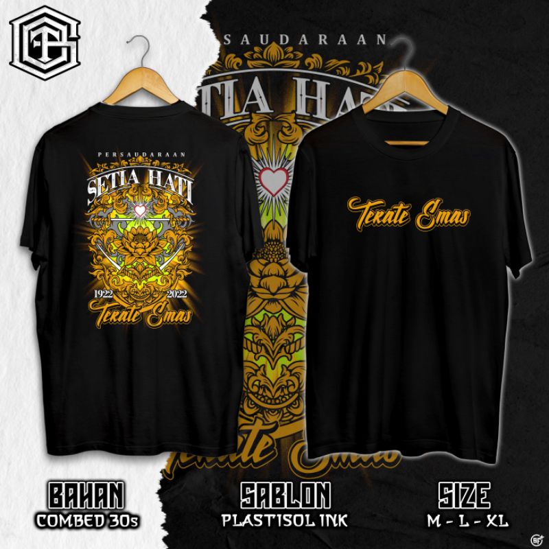 KAOS TERATE EMAS HITAM//KAOS SATU ABAD PSHT TERBARU// KAOS HITAM SABLON PLASTISOL//KAOS HITAM COMBED