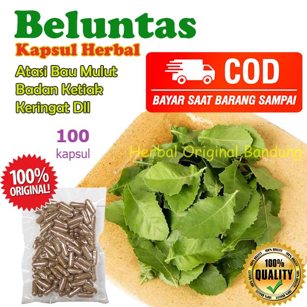 KAPSUL DAUN BELUNTAS ISI 100 OBAT HERBAL HILANGKAN BAU BADAN KERINGAT KETIAK BAU MULUT KEPUTIHAN