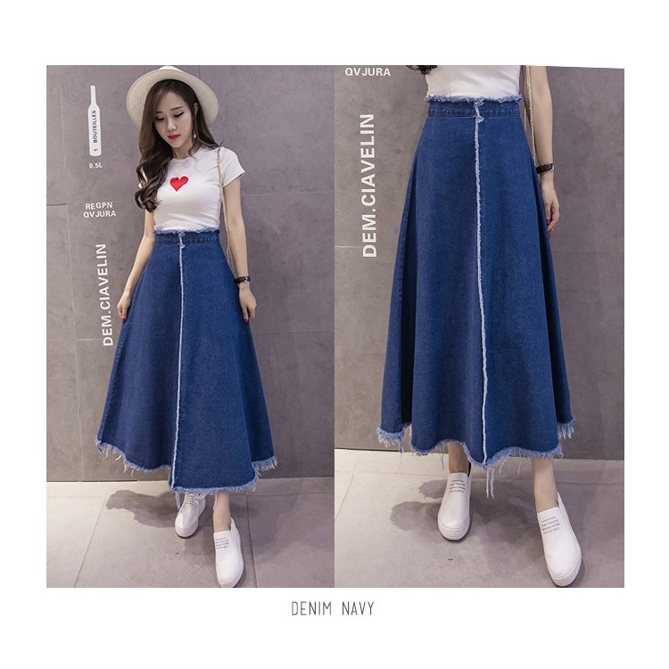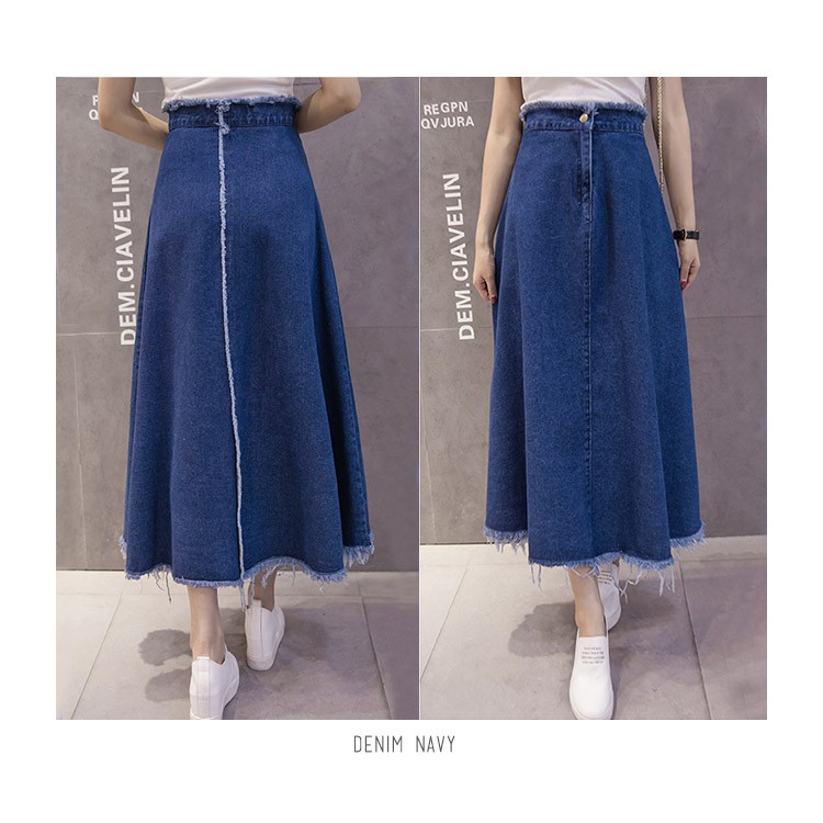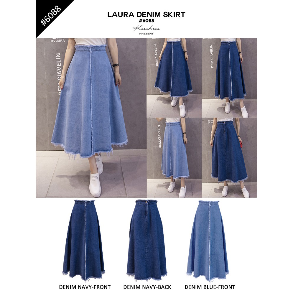 KARAKOREA 6088 Laura Denim skirt Rok panjang Wanita Rok maxi Rok jeans Rok flare Rok denim/Rok jeans wanita/rok jeans jumbo/ootd rok jeans/jeans wanita kece/jeans highwaist/rok jeans korean style