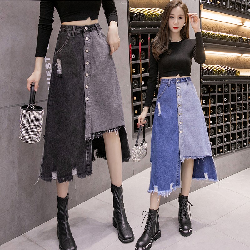 KARAKOREA 6221 Ayumi Denim Skirt/Rok Denim/Rok Jeans/Rok jeans wanita/Rok Jeans Korea/Rok wanita/rok jeans jumbo/ootd rok jeans/jeans wanita kece/jeans highwaist/rok jeans korean style