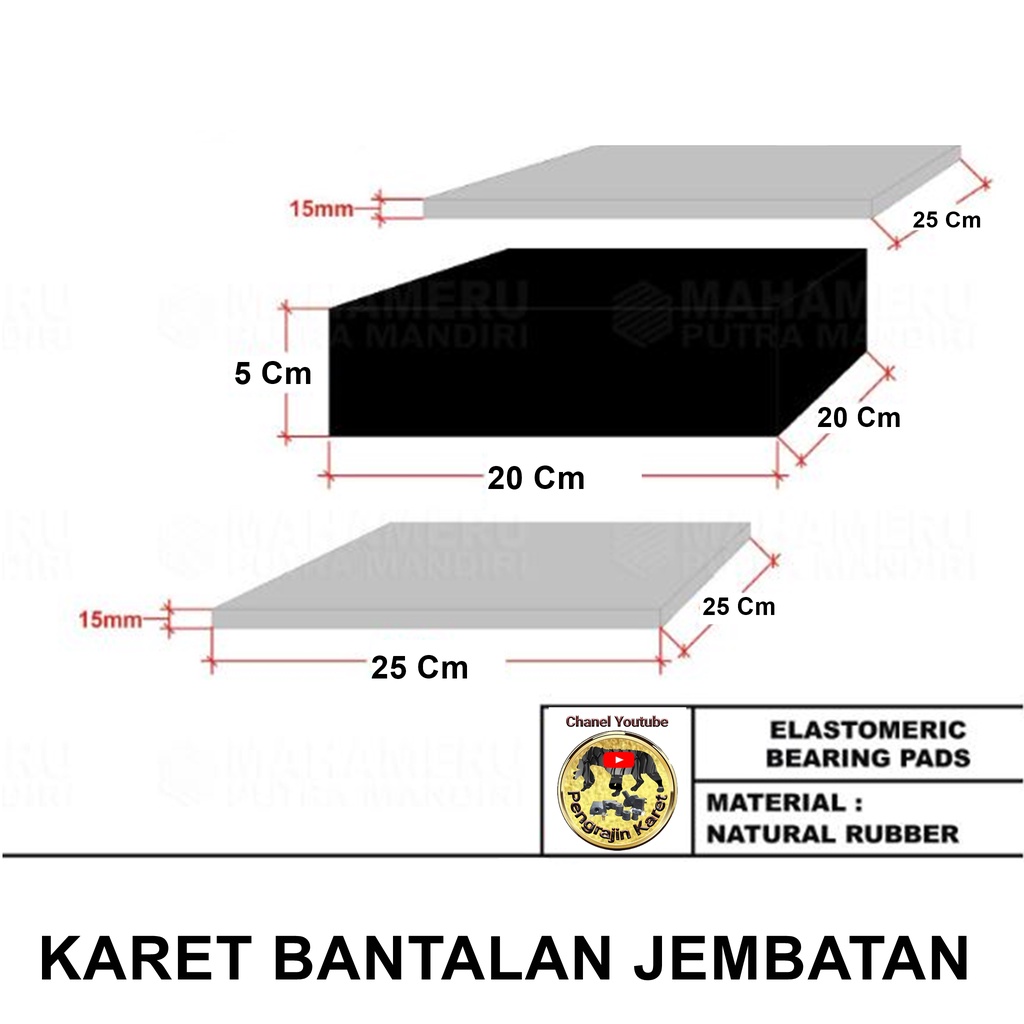 KARET BANTALAN JEMBATAN * RUBBER elastomer bearing pad * AWET DAN BANDEL DARI KARET SUPER UKURAN : 30 x 30 cm , 32 x 32 cm , 25 x 25 cm ~20 X 20 X 5 Cm