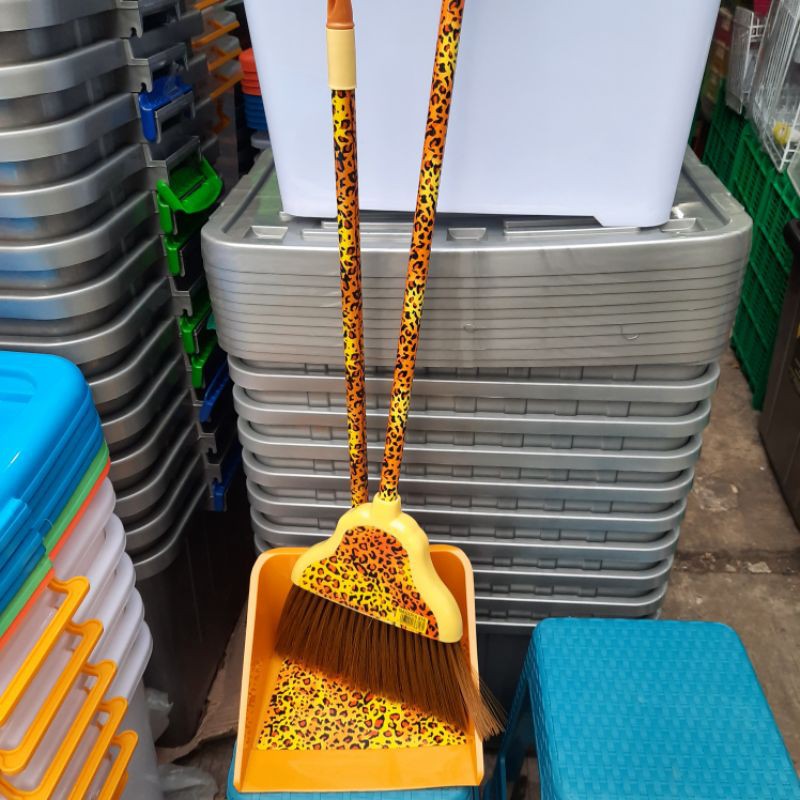 KARGO PAKET SAPU PENGKI NAGOYA MOTIF MACAN 1 SET ALAT KEBERSIHAN SAPU LANTAI DAN SEROK SAMPAH