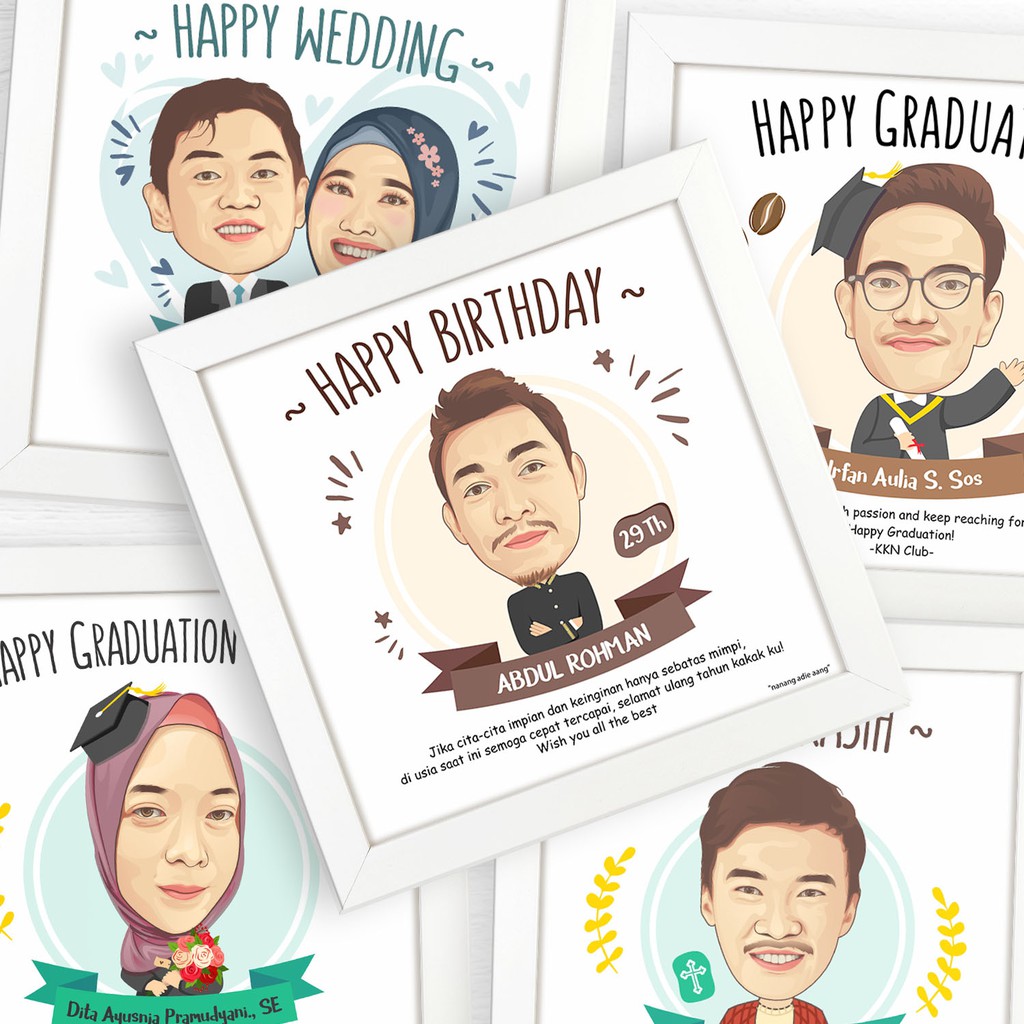 Karikatur Vector Custom Kado Unik dan Spesial untuk Wisuda, Wedding, Ulang Tahun, dan Anniversary. Hadiah Personal yang Dibuat dengan Cepat dan Detail Ilustrasi, Cocok untuk Semua Momen Istimewa.