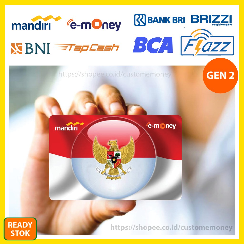 KARTU EMONEY BENDERA INDONESIA KUMPULAN 35 ETOLL E-MONEY MANDIRI FLAZZ BCA TAPCASH BRIZZI - 1 SISI
