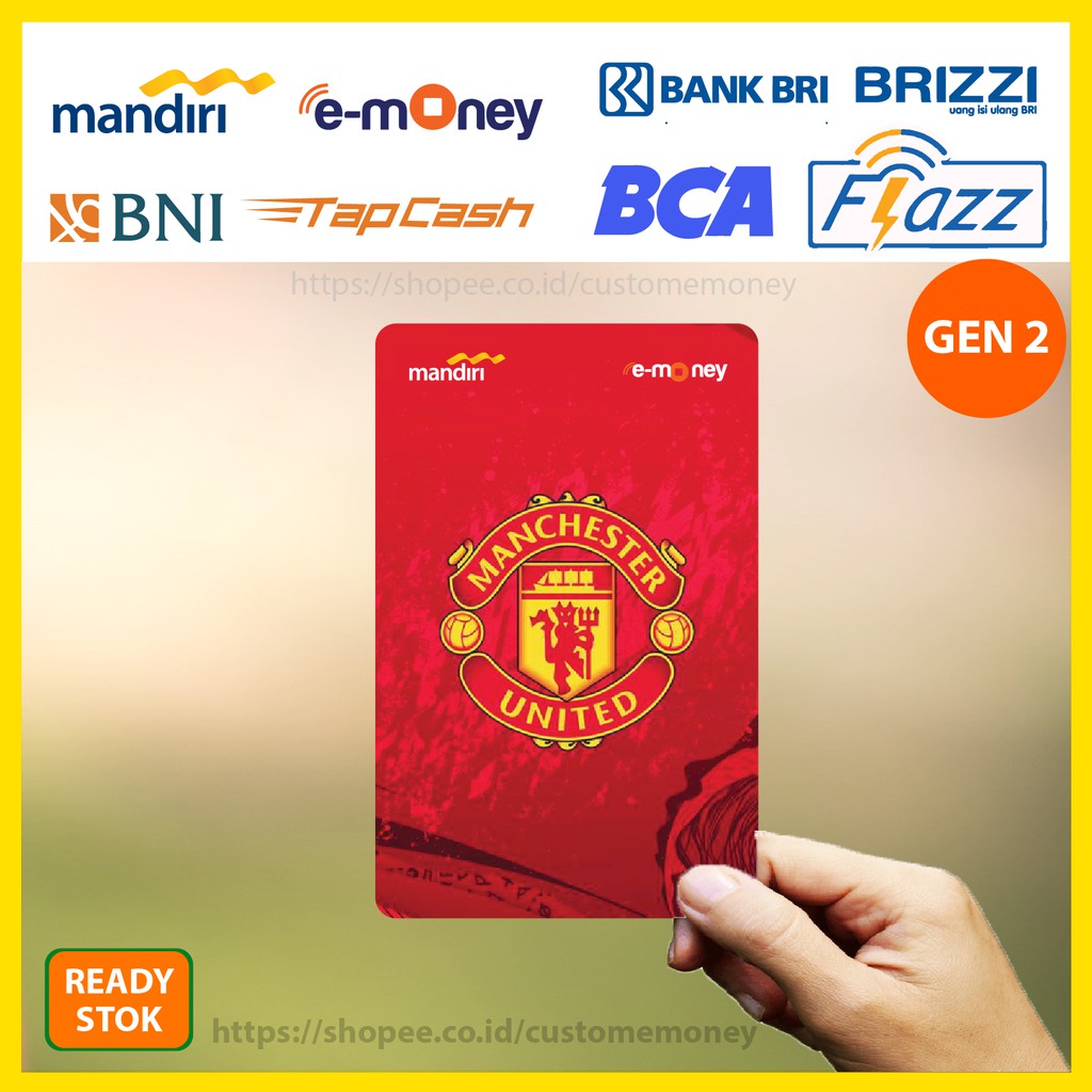 KARTU EMONEY GAMBAR LOGO MU KLUB BOLA RED ETOLL E-MONEY MANDIRI FLAZZ BCA GEN2 TAPCASH BRIZZI 1 SISI