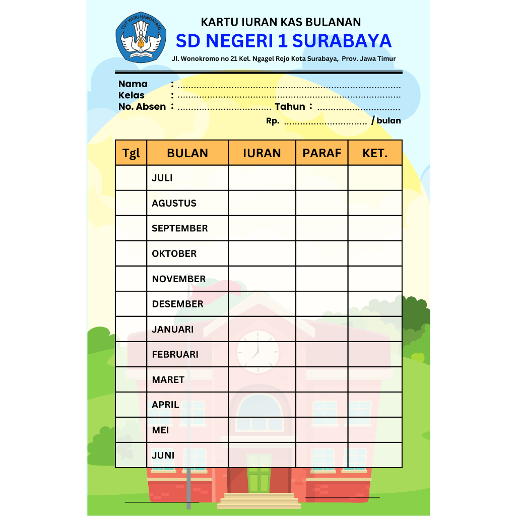 KARTU IURAN SPP/ INFAQ/ IURAN BULAN/ IURAN KAS SD