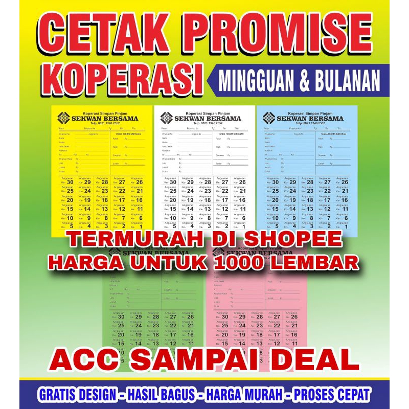KARTU KOPERASI PROMISE HARIAN DAN MINGGUAN / PROMISE KOPERASI (1000 LEMBAR)