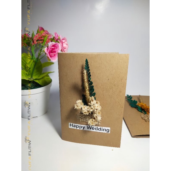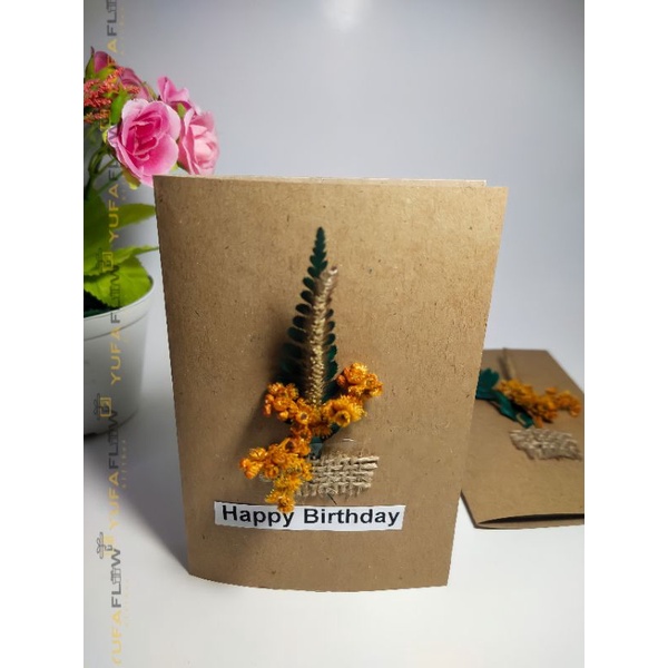 KARTU UCAPAN VINTAGE BUNGA DRIED FLOWER BUNGA KERING GREETING CARD