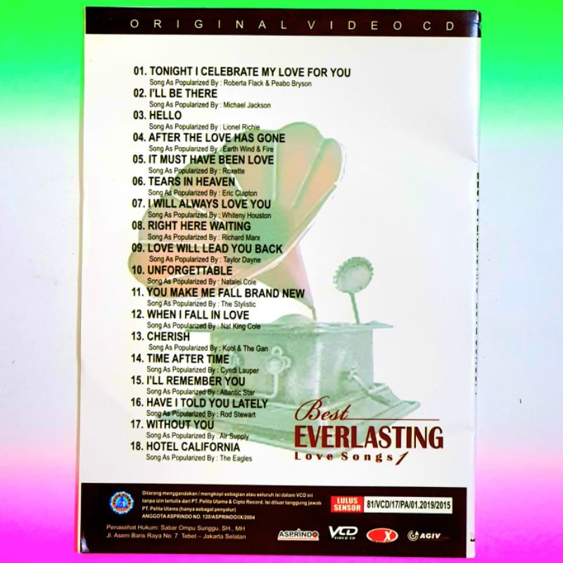 KASET ASLI ORIGINAL VIDEO MUSIK LAGU KARAOKE LOVE SONG-VOCAL ON OF KTIF-LAGU EVERGREEN GOLDEN LOVE SONG SWEET MEMORIES-LAGU POP BARAT LAWAS TEMBANG KENANGAN NOSTALGIA POP BARAT KARAOKE