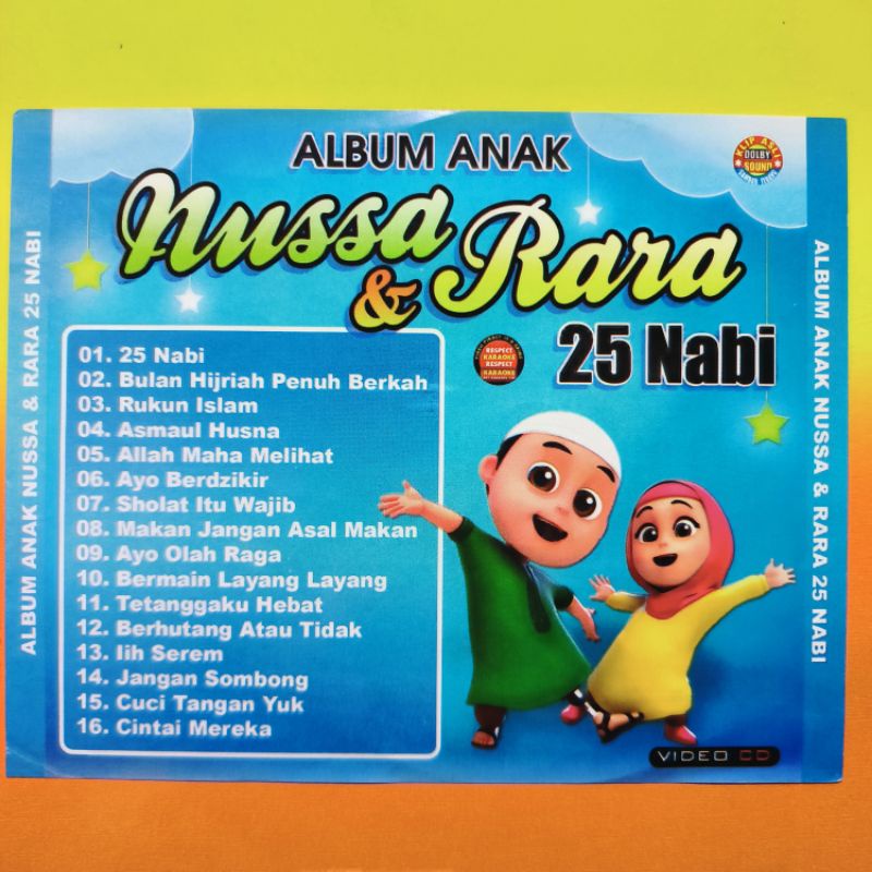 KASET VCD MUSIK 16 LAGU ANAK ISLAMI KOLEKSI ALBUM NUSSA & RARA PILIHAN TERPOPULER.